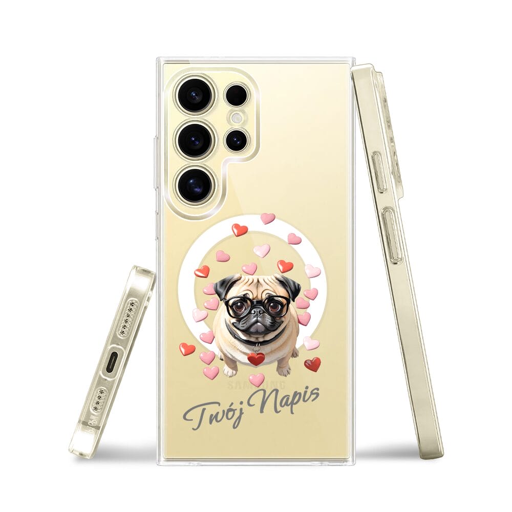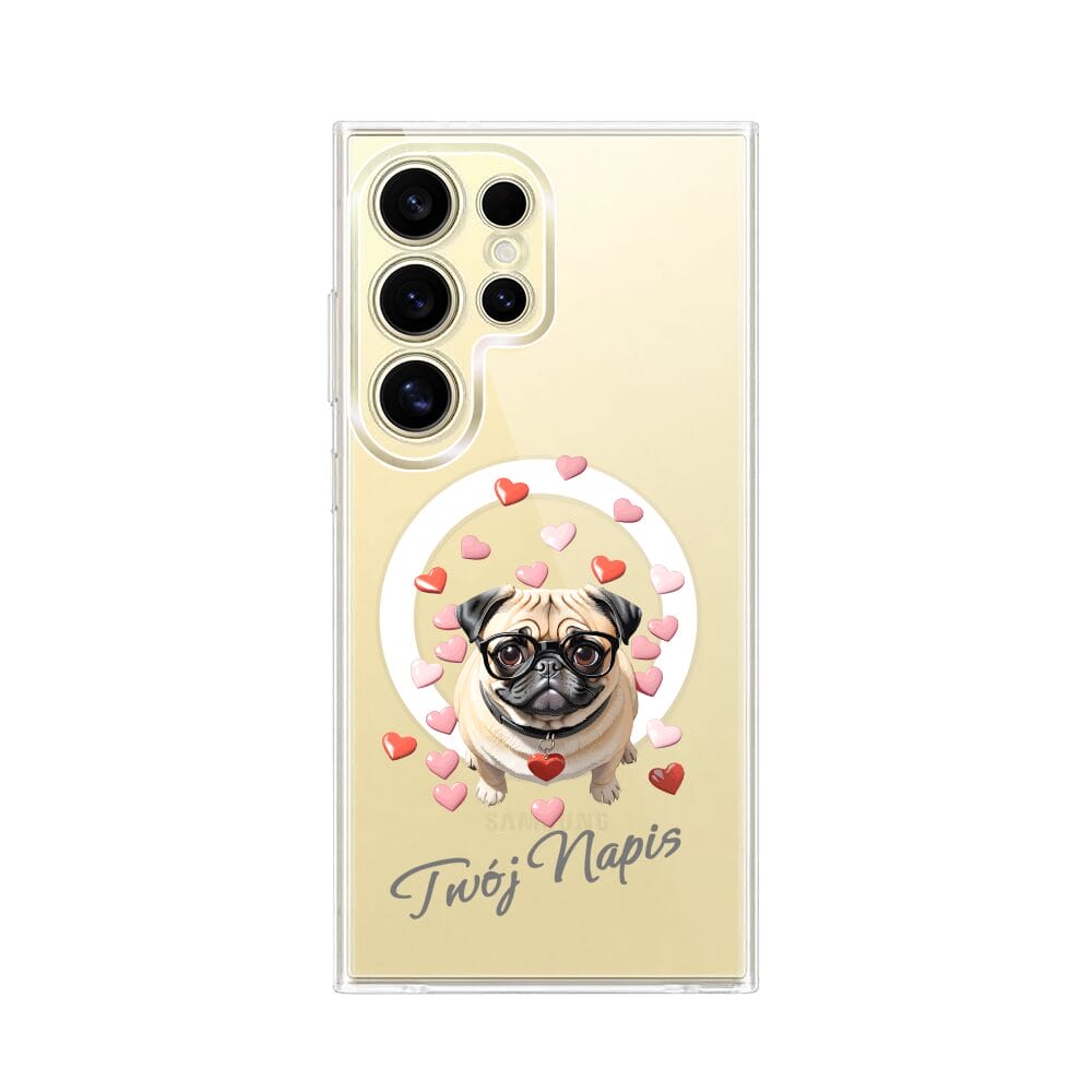 Etui do Samsung Galaxy S24 Ultra z MagSafe przeźroczyste, silikonowe Flexi, Puppy Love, pies rasy Mops