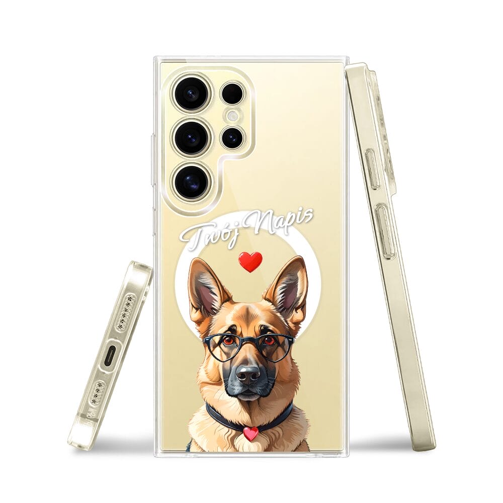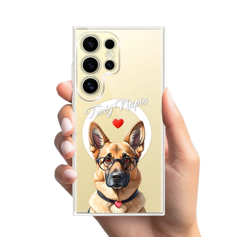 Etui do Samsung Galaxy S24 Ultra z MagSafe przeźroczyste, silikonowe Flexi, Puppy Love, pies rasy Owczarek Niemiecki