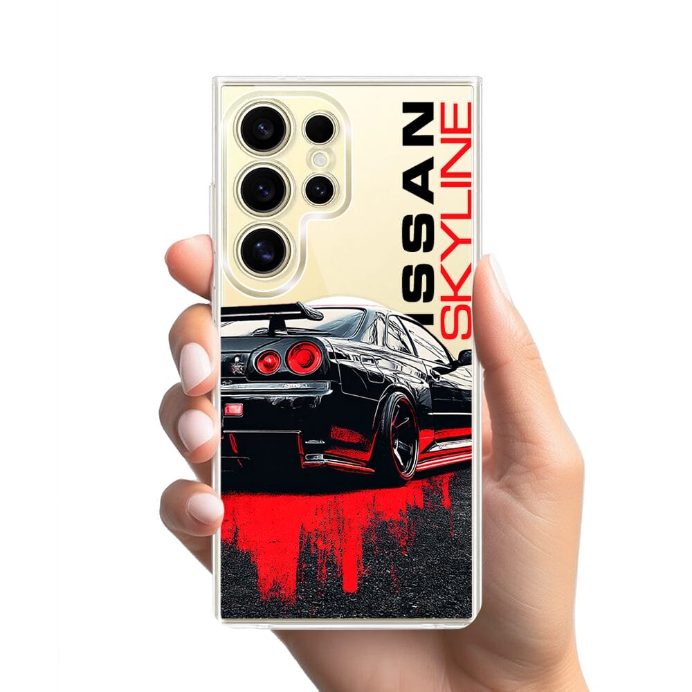 Etui do Samsung Galaxy S24 Ultra z MagSafe przeźroczyste, silikonowe Flexi, Szybkie Auta, czarny Skyline