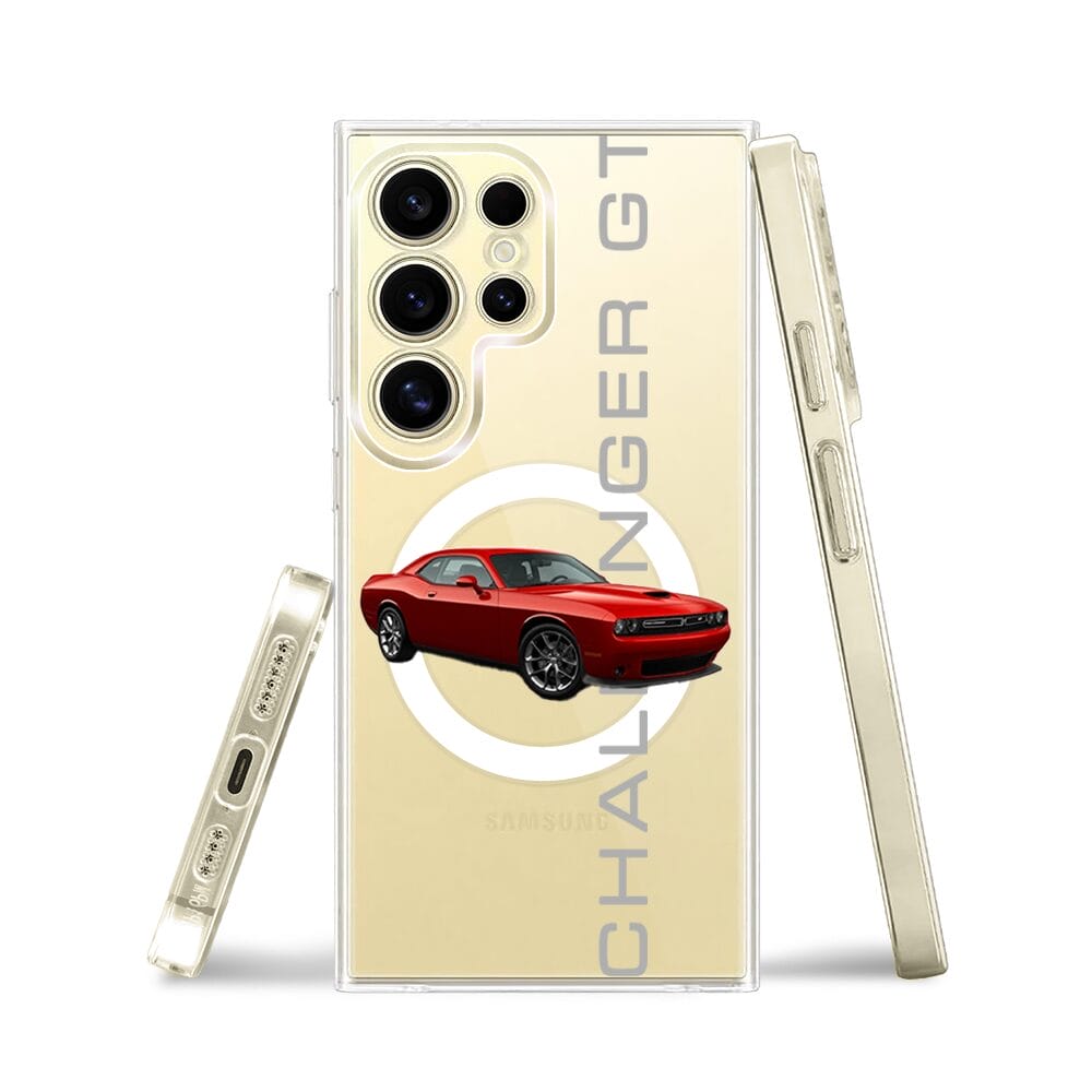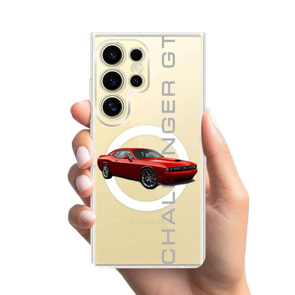 Etui do Samsung Galaxy S24 Ultra z MagSafe przeźroczyste, silikonowe Flexi, Szybkie Auta, czerwony Challenger GT