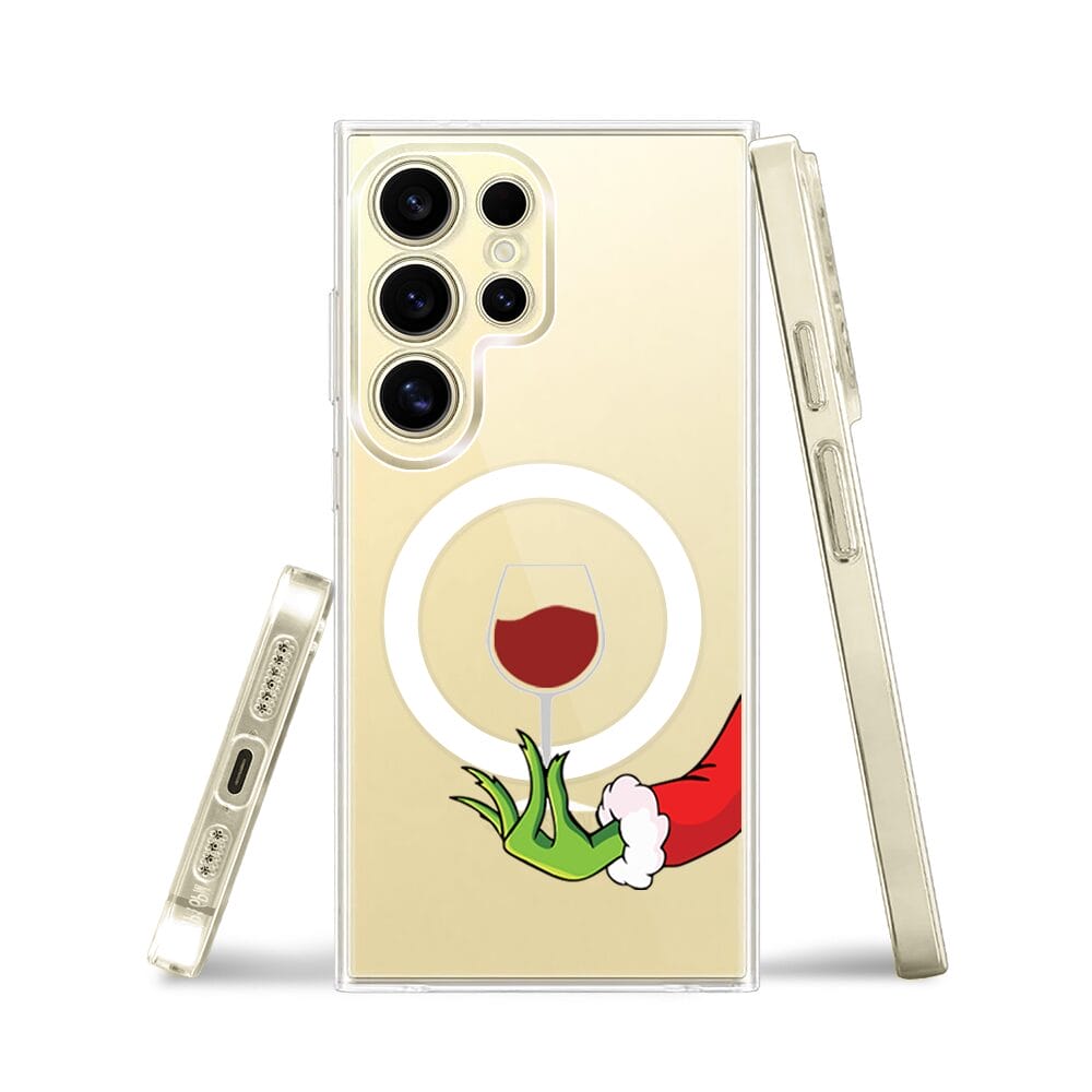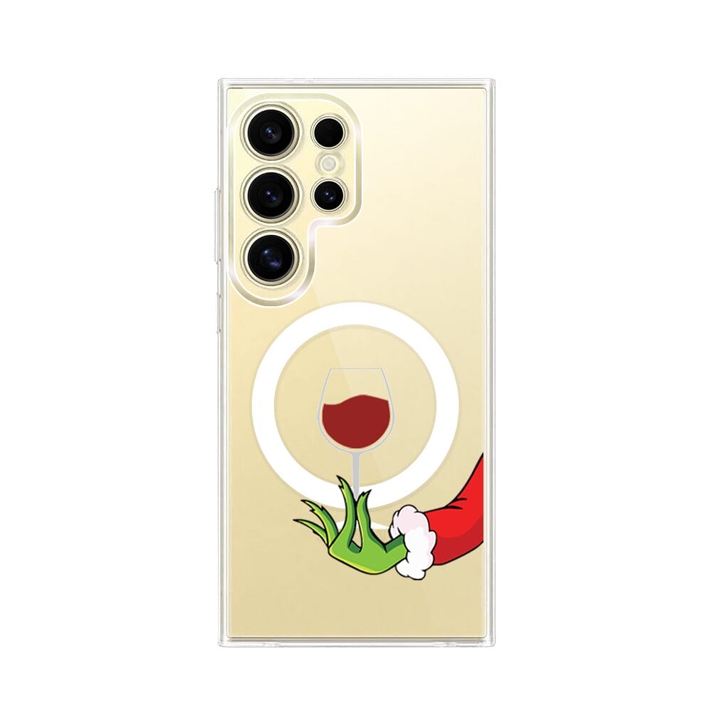 Etui do Samsung Galaxy S24 Ultra z MagSafe przeźroczyste, silikonowe Flexi, Zielony psotnik z lampką wina