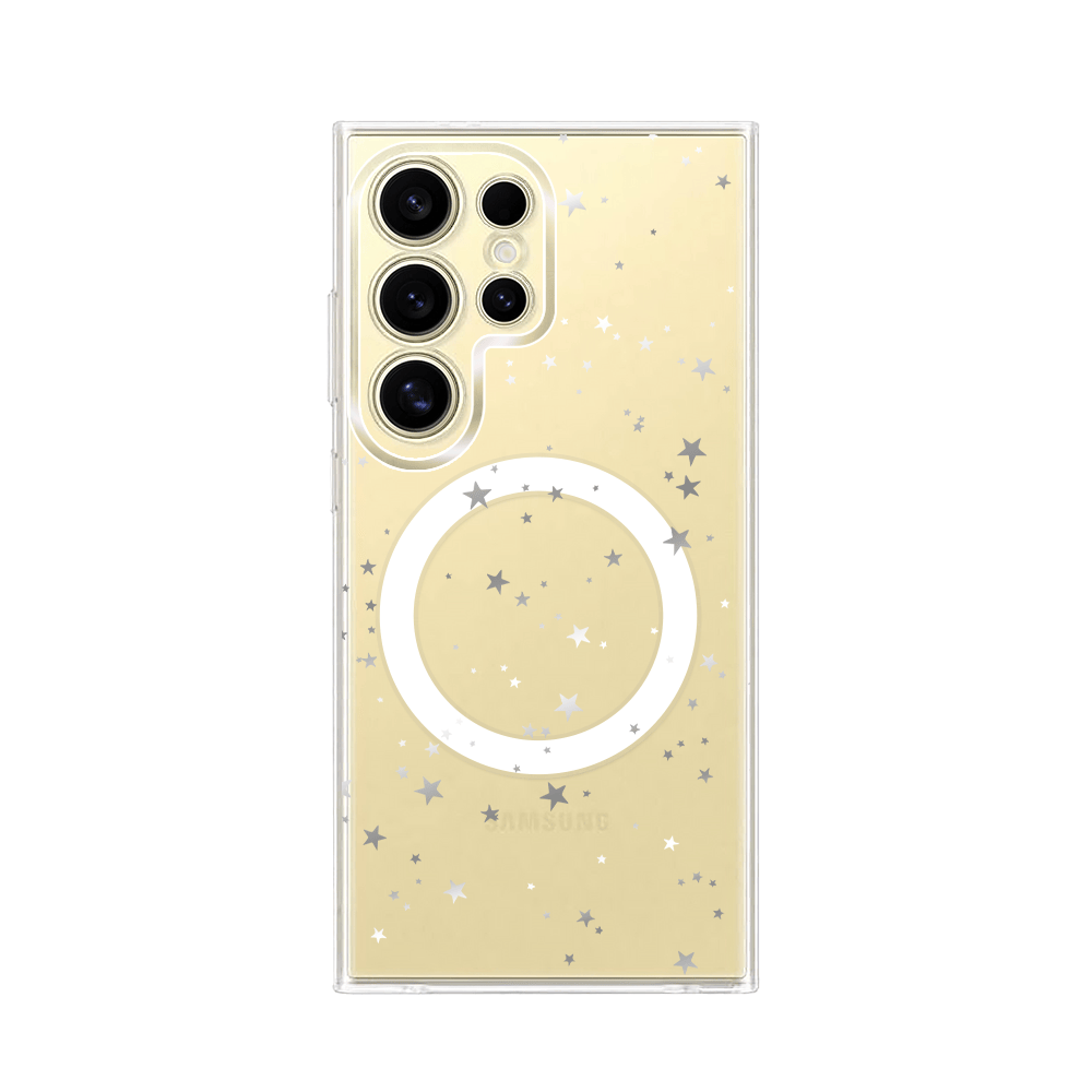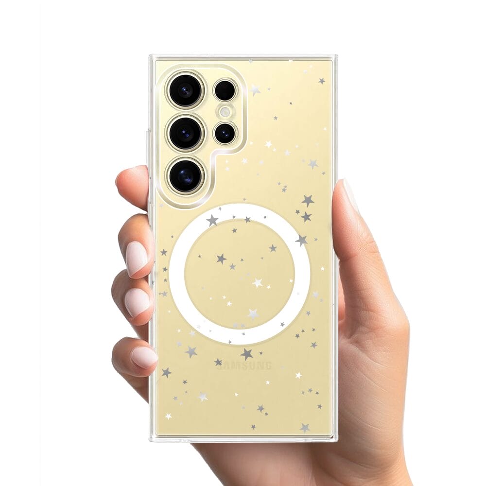 Etui do Samsung Galaxy S24 Ultra z MagSafe przeźroczyste, silikonowe Flexi, Zimowa magia, Szampańskie gwiazdki
