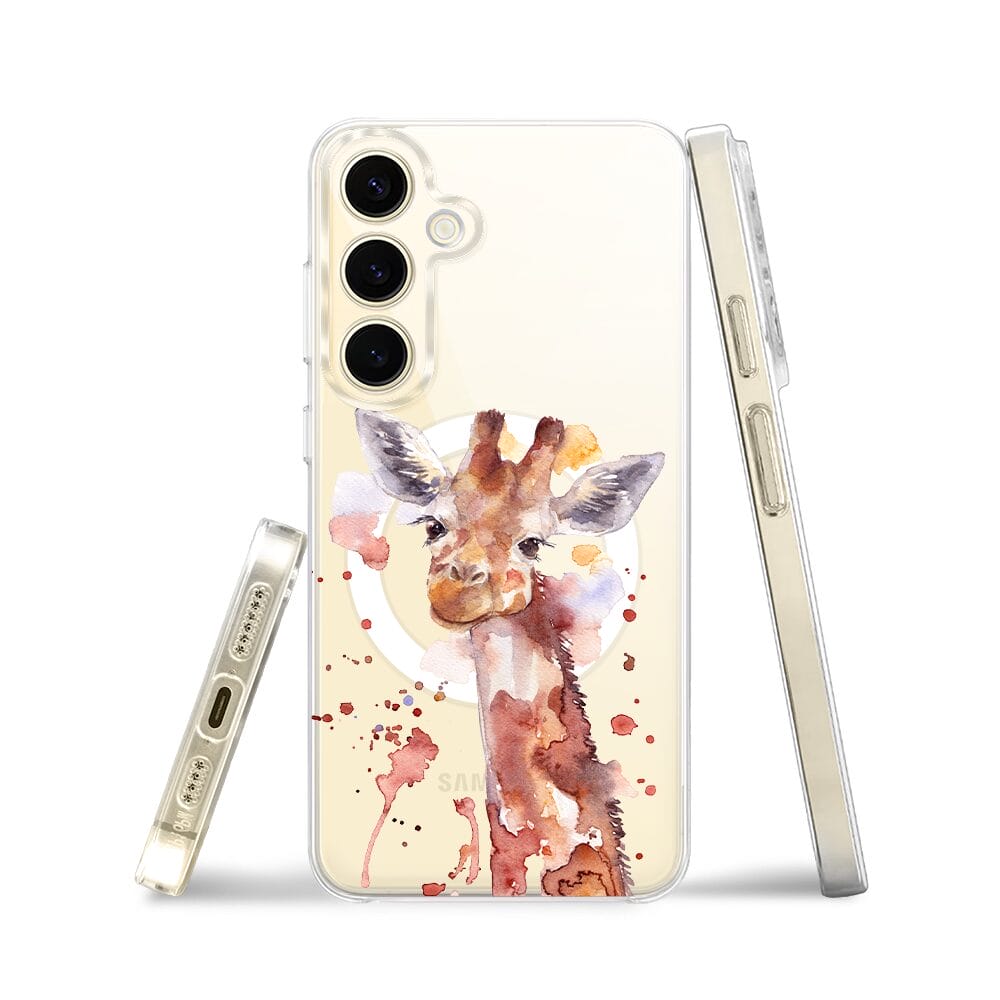 Etui do Samsung Galaxy S24 z MagSafe przeźroczyste, silikonowe Flexi, Akwarelowe Zoo, Żyrafa
