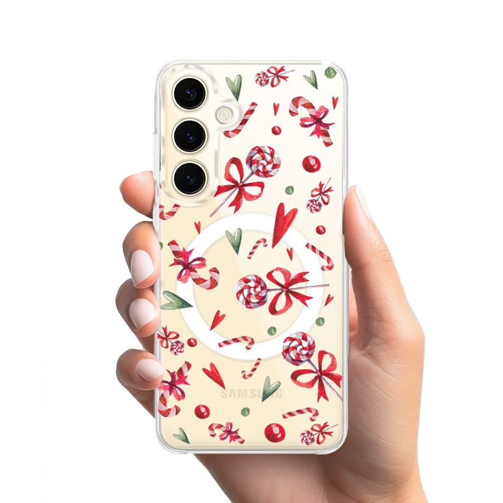 Etui do Samsung Galaxy S24 z MagSafe przeźroczyste, silikonowe Flexi, Cukierki świąteczne