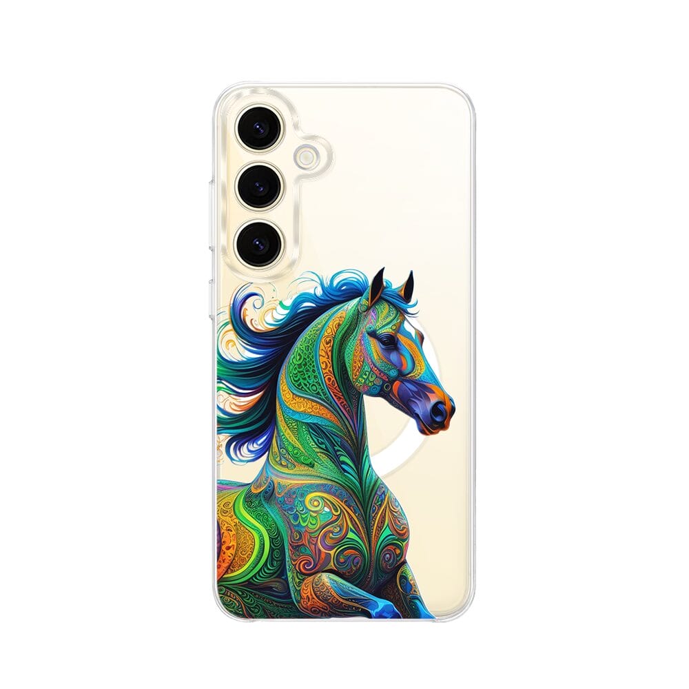 Etui do Samsung Galaxy S24 z MagSafe przeźroczyste, silikonowe Flexi, Dzika Mandala, Koń