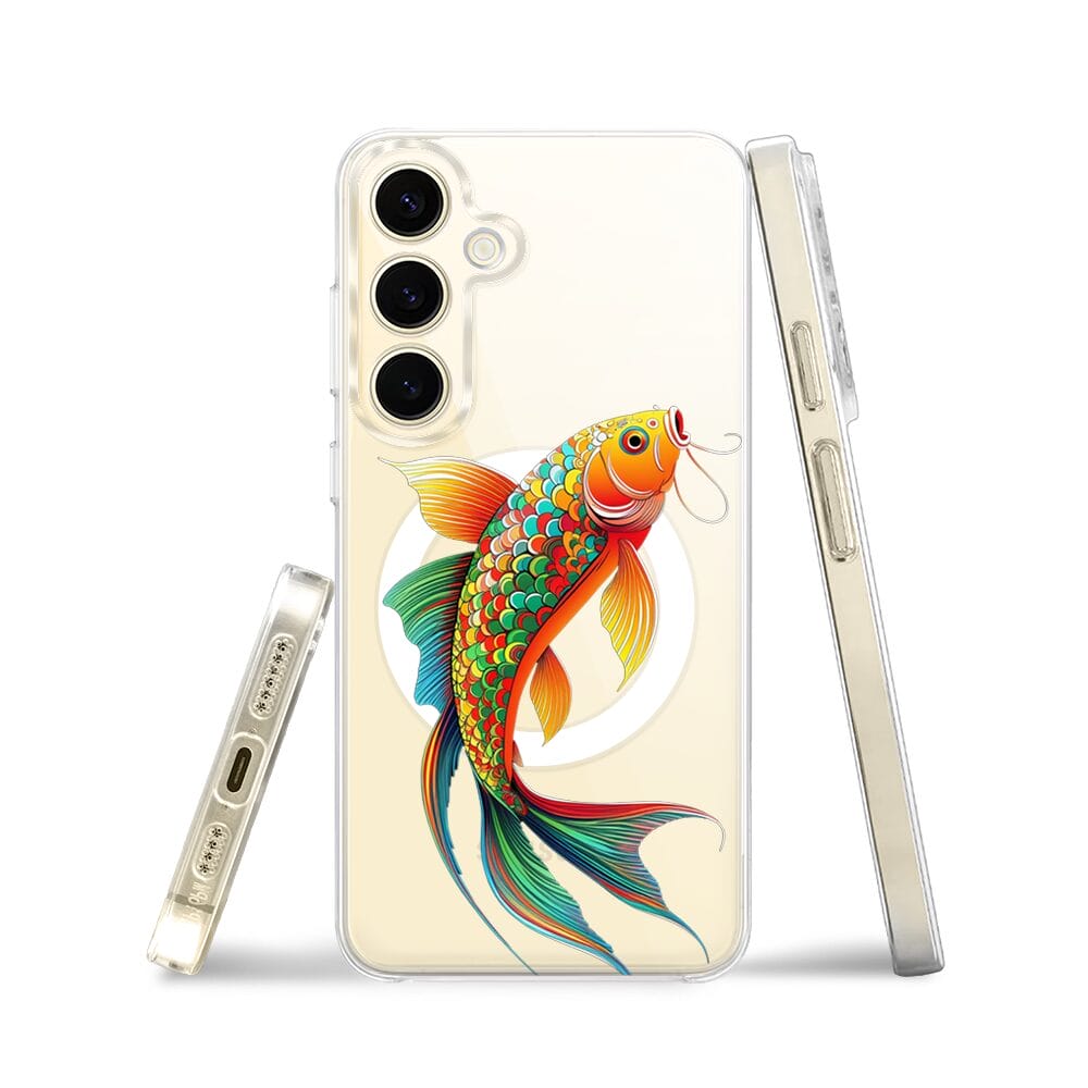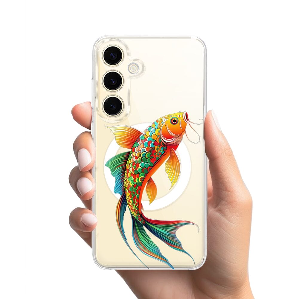 Etui do Samsung Galaxy S24 z MagSafe przeźroczyste, silikonowe Flexi, Dzika Mandala, Złota ryba
