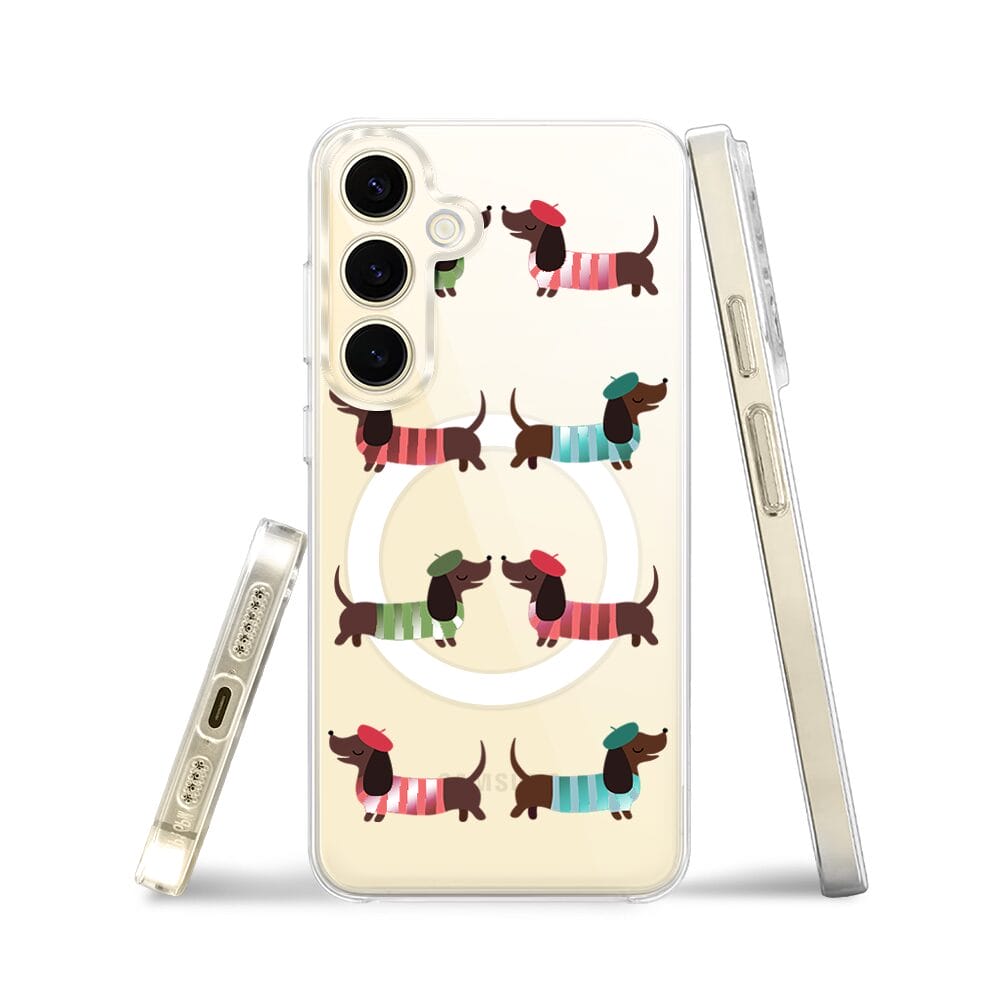 Etui do Samsung Galaxy S24 z MagSafe przeźroczyste, silikonowe Flexi, jamnik w Paryżu