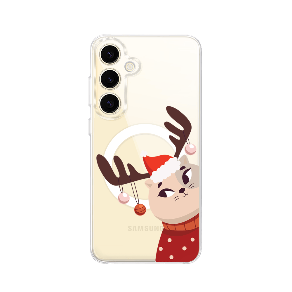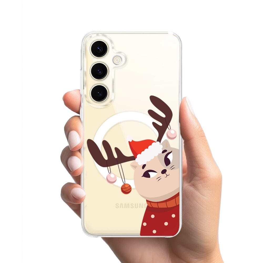 Etui do Samsung Galaxy S24 z MagSafe przeźroczyste, silikonowe Flexi, Kotek przebrany za reniferka