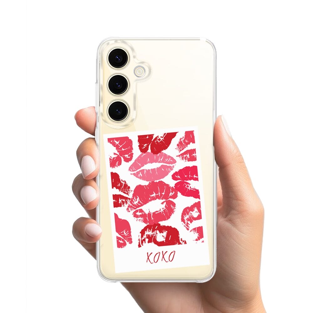 Etui do Samsung Galaxy S24 z MagSafe przeźroczyste, silikonowe Flexi, pocałunki, polaroid