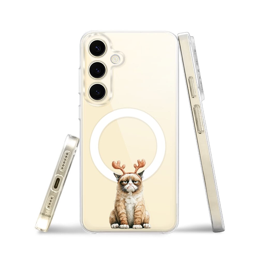 Etui do Samsung Galaxy S24 z MagSafe przeźroczyste, silikonowe Flexi, Przytulne święta, Kot który nie chciał być reniferem