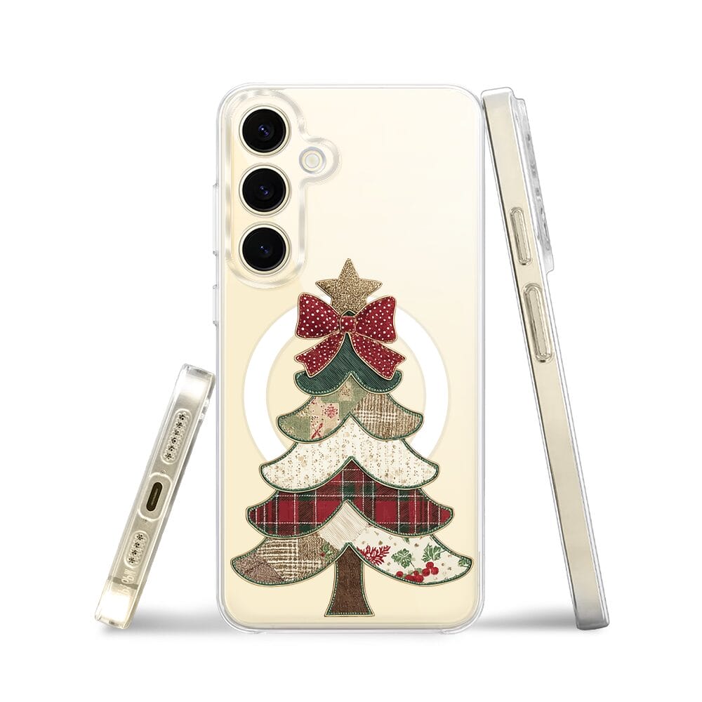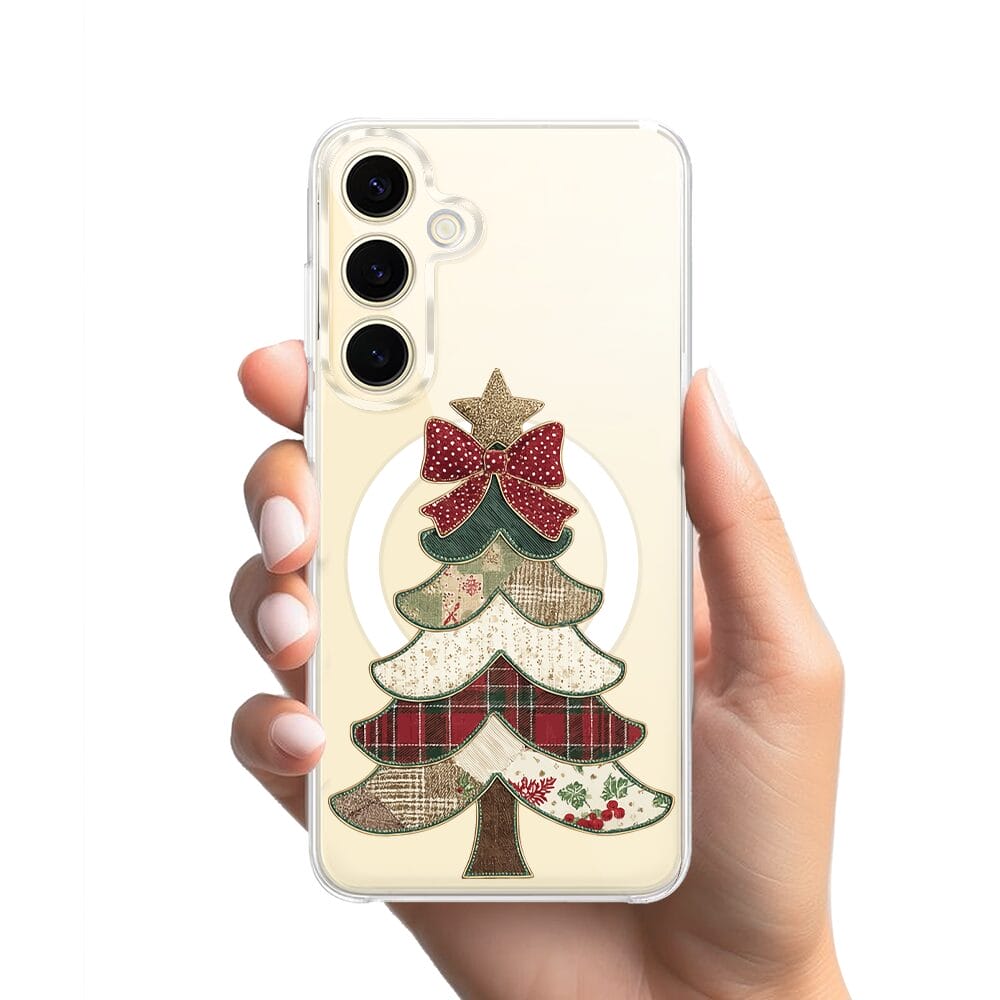Etui do Samsung Galaxy S24 z MagSafe przeźroczyste, silikonowe Flexi, Przytulne święta, Kraciasta choinka