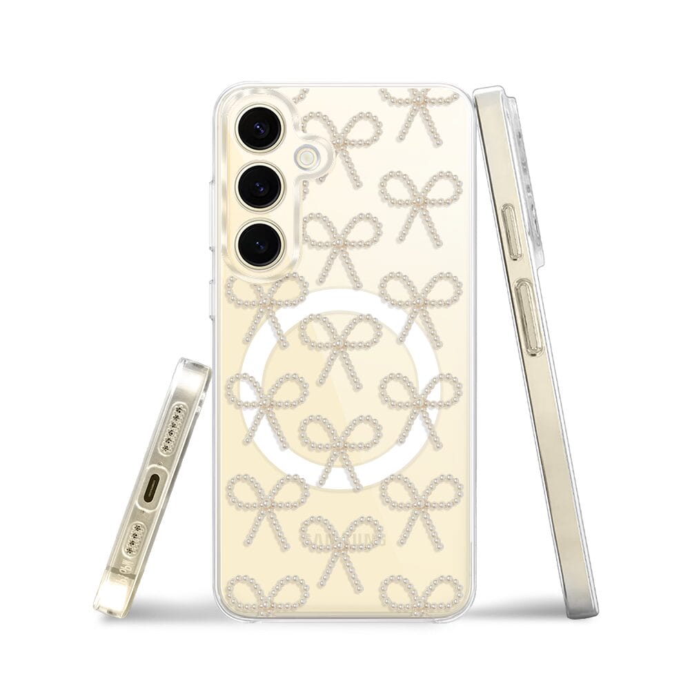 Etui do Samsung Galaxy S24 z MagSafe przeźroczyste, silikonowe Flexi, Przytulne święta, złote kokardki