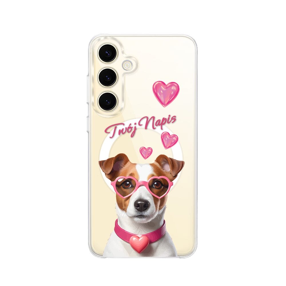 Etui do Samsung Galaxy S24 z MagSafe przeźroczyste, silikonowe Flexi, Puppy Love, pies rasy Jack Russell Terrier