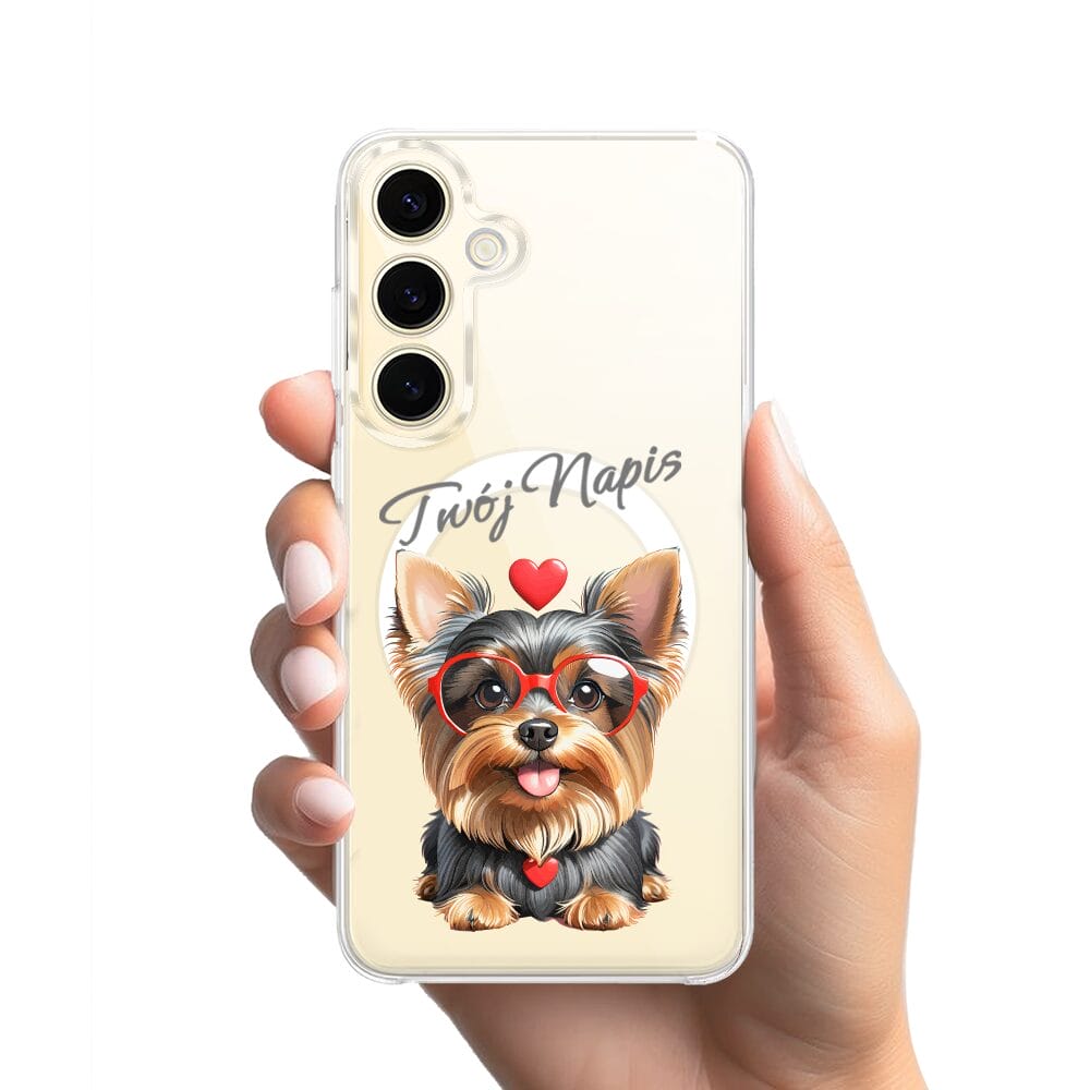 Etui do Samsung Galaxy S24 z MagSafe przeźroczyste, silikonowe Flexi, Puppy Love, pies rasy York