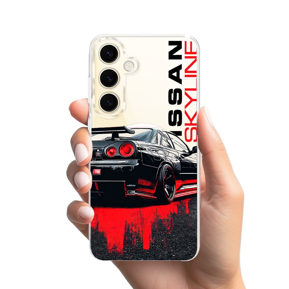 Etui do Samsung Galaxy S24 z MagSafe przeźroczyste, silikonowe Flexi, Szybkie Auta, czarny Skyline