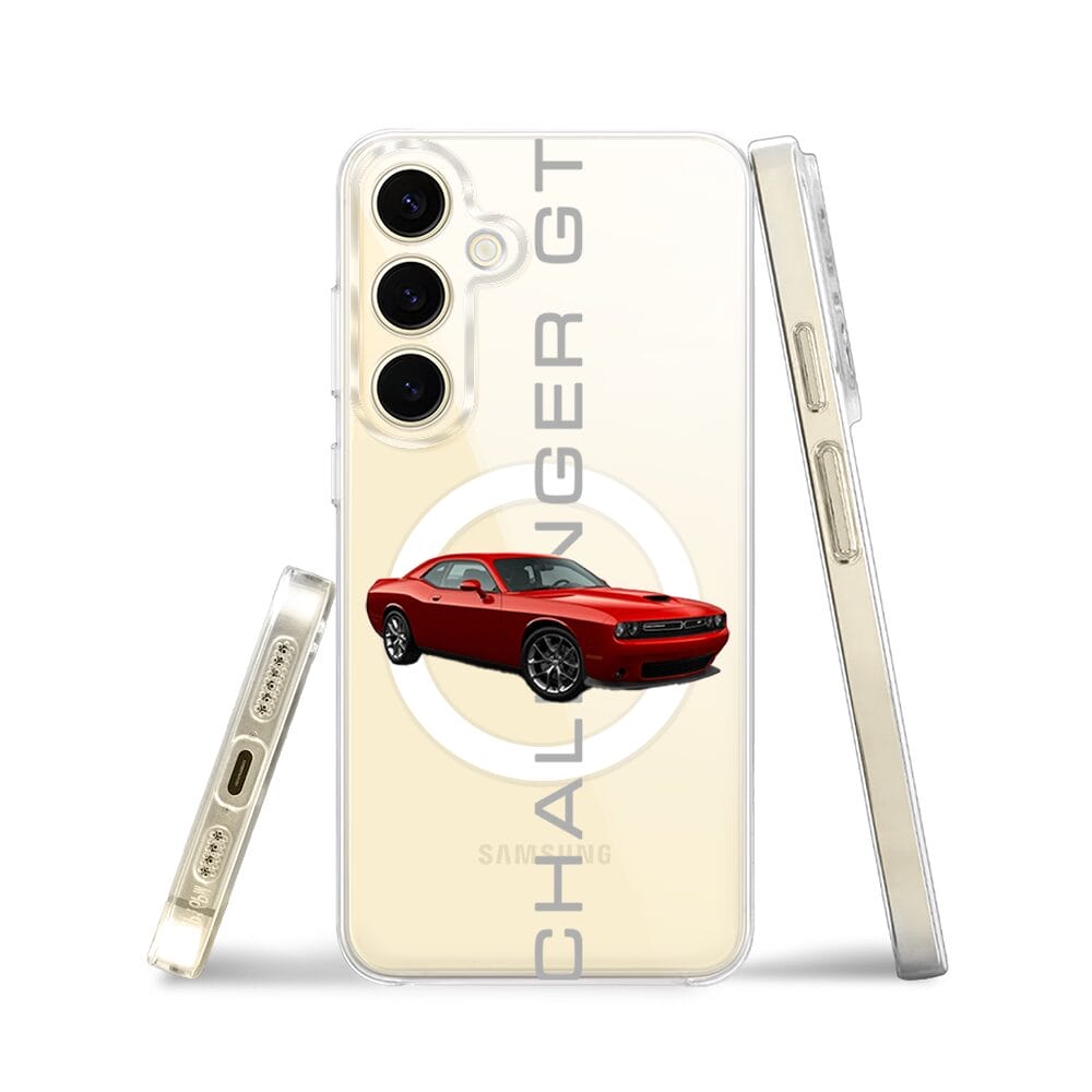 Etui do Samsung Galaxy S24 z MagSafe przeźroczyste, silikonowe Flexi, Szybkie Auta, czerwony Challenger GT