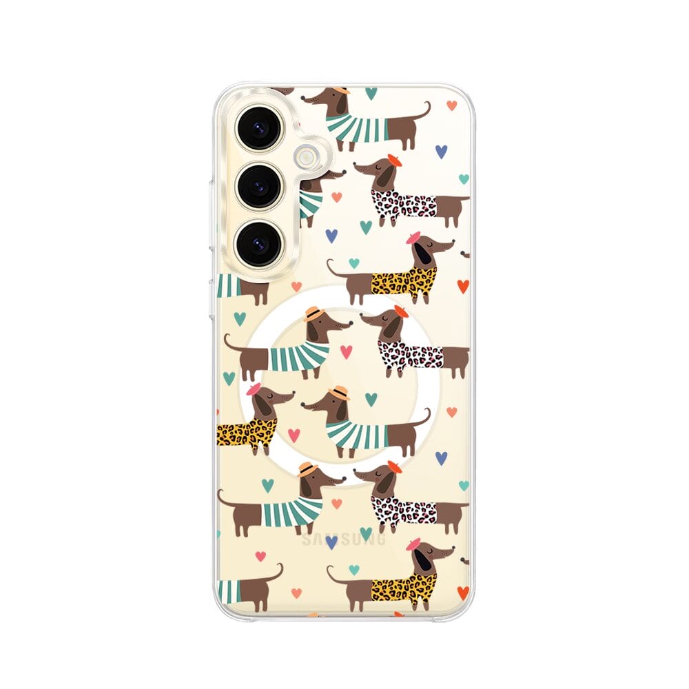 Etui do Samsung Galaxy S24 z MagSafe przeźroczyste, silikonowe Flexi, zakochane jamniki