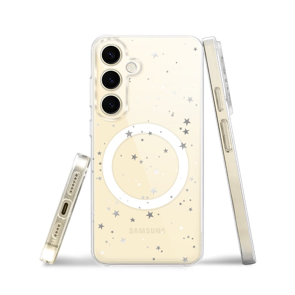 Etui do Samsung Galaxy S24 z MagSafe przeźroczyste, silikonowe Flexi, Zimowa magia, Szampańskie gwiazdki