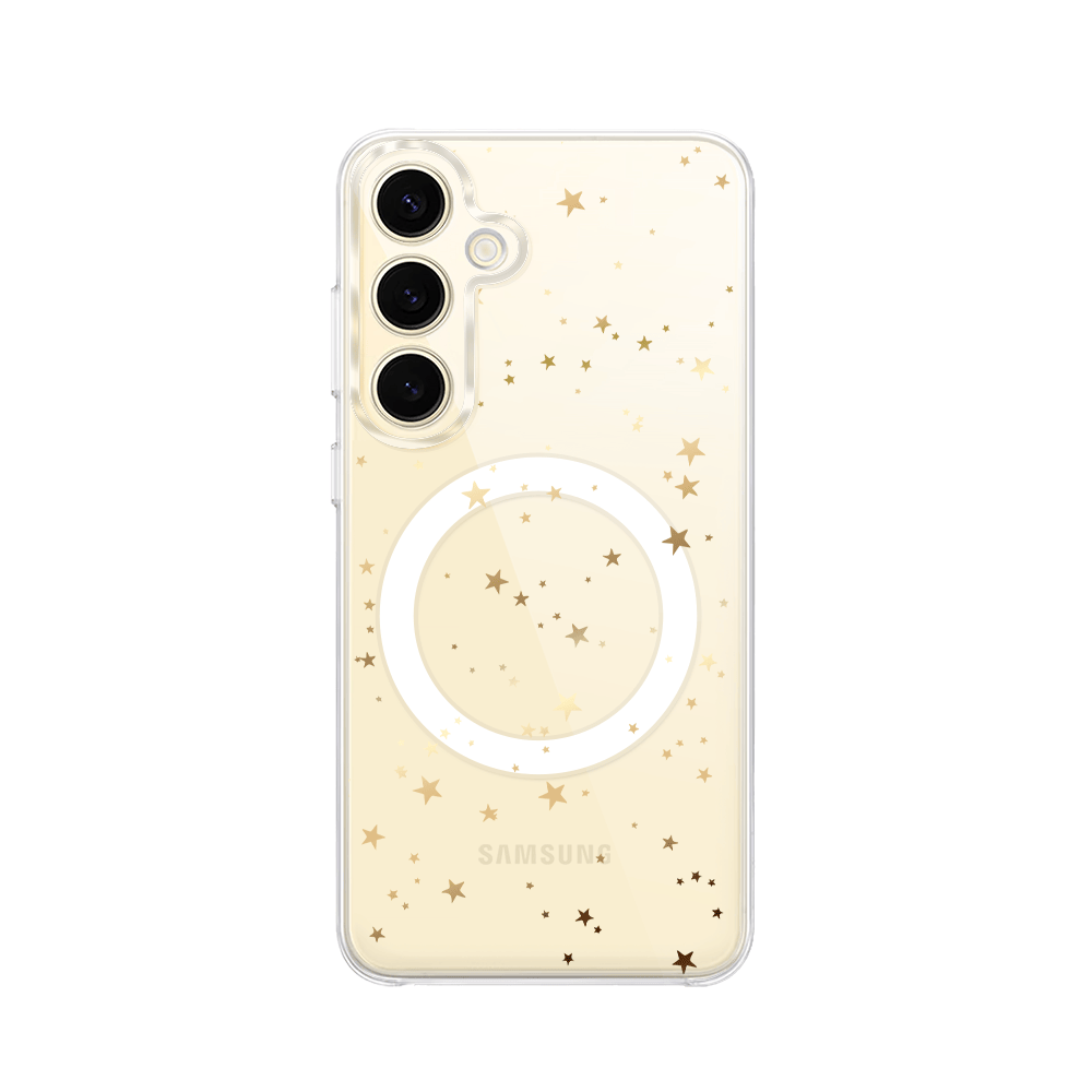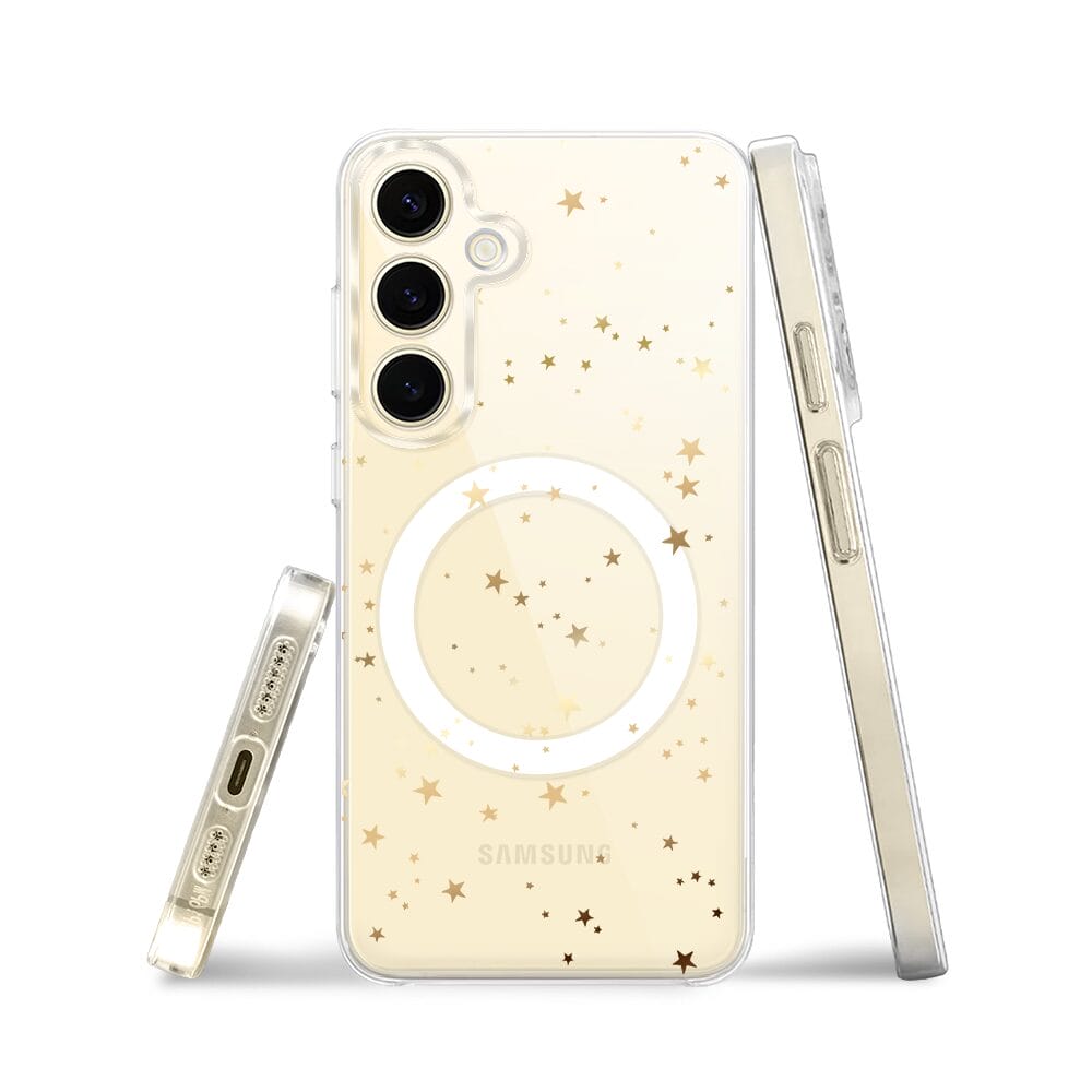 Etui do Samsung Galaxy S24 z MagSafe przeźroczyste, silikonowe Flexi, Zimowa magia, Złote gwiazdki
