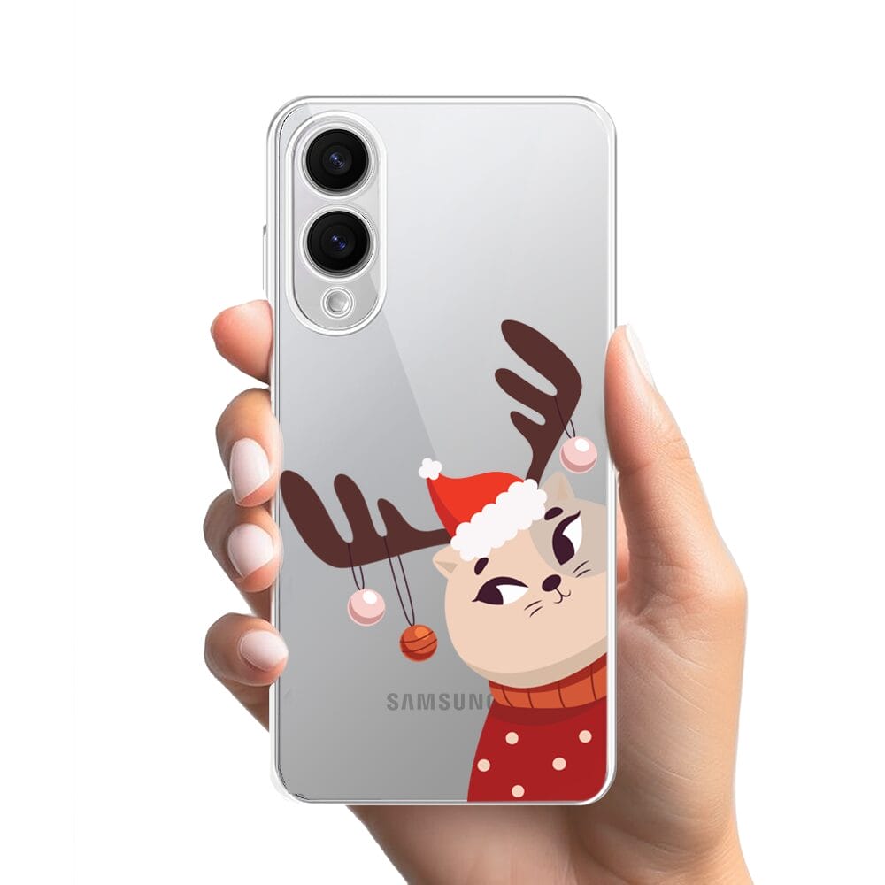 Etui do Samsung Galaxy S25 Edge przeźroczyste, silikonowe Flexi, Kotek przebrany za reniferka