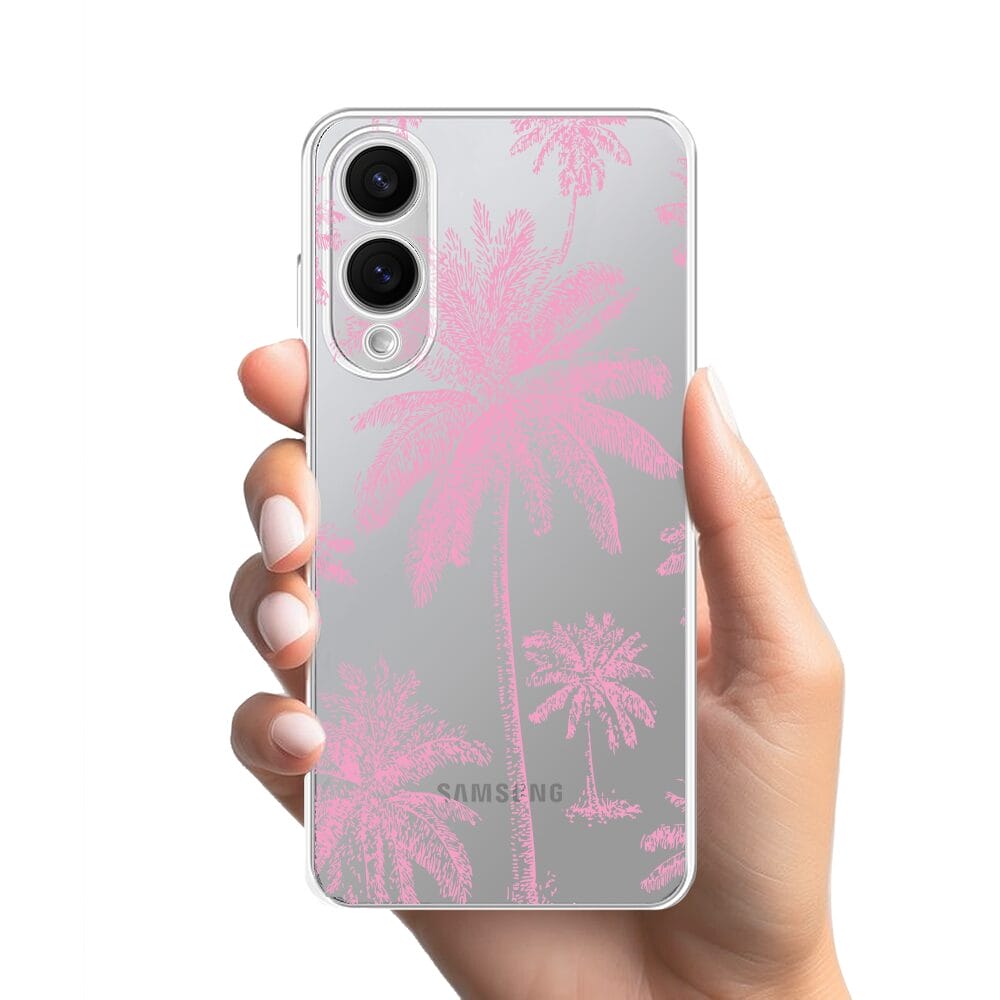 Etui do Samsung Galaxy S25 Edge przeźroczyste, silikonowe Flexi, Mystic, Różowe palmy