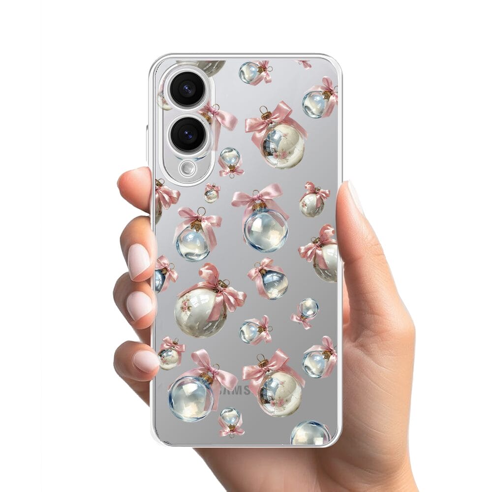 Etui do Samsung Galaxy S25 Edge przeźroczyste, silikonowe Flexi, Przytulne święta, Pastelowe bombki