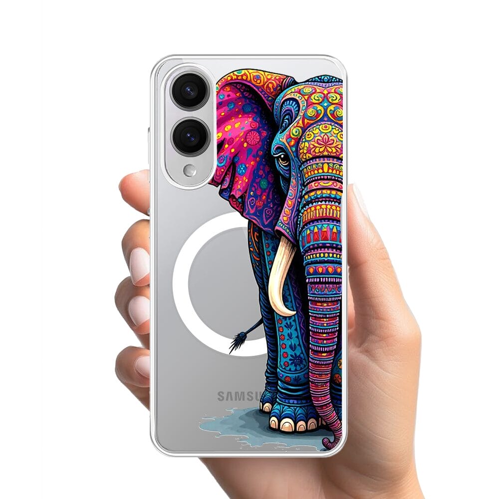 Etui do Samsung Galaxy S25 Edge z MagSafe przeźroczyste, silikonowe Flexi, Dzika Mandala, Słoń