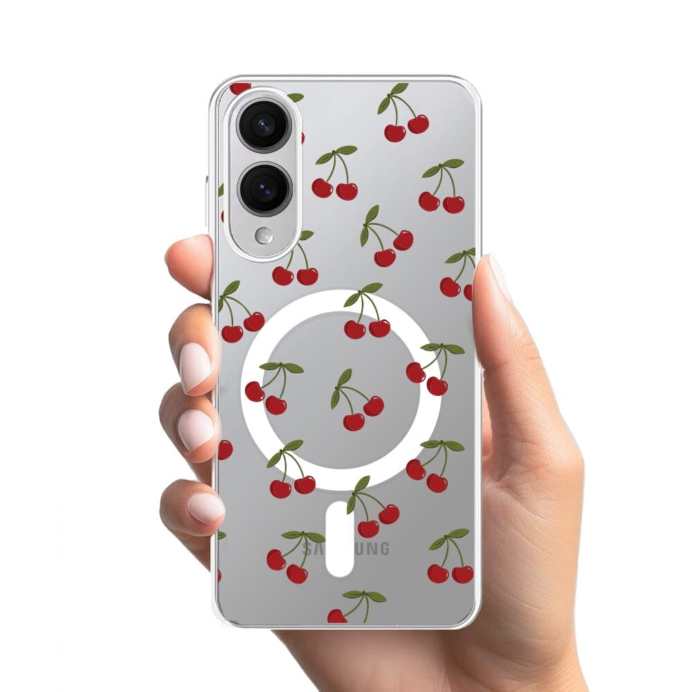Etui do Samsung Galaxy S25 Edge z MagSafe przeźroczyste, silikonowe Flexi, Mini Patterns, Wiśnie