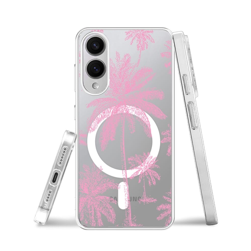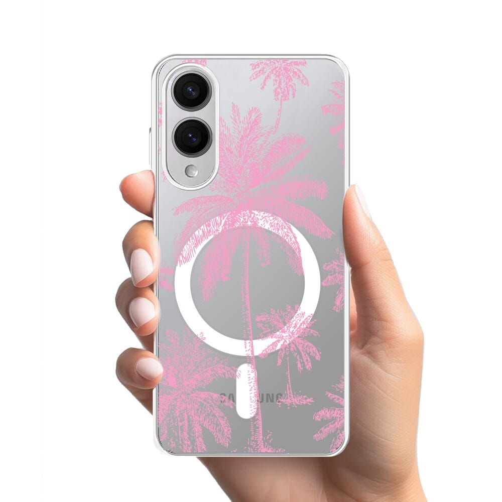Etui do Samsung Galaxy S25 Edge z MagSafe przeźroczyste, silikonowe Flexi, Mystic, Różowe palmy