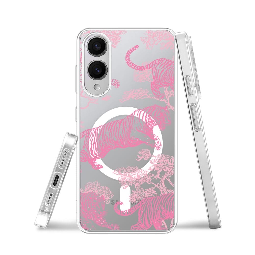 Etui do Samsung Galaxy S25 Edge z MagSafe przeźroczyste, silikonowe Flexi, Mystic, Różowe tygrysy