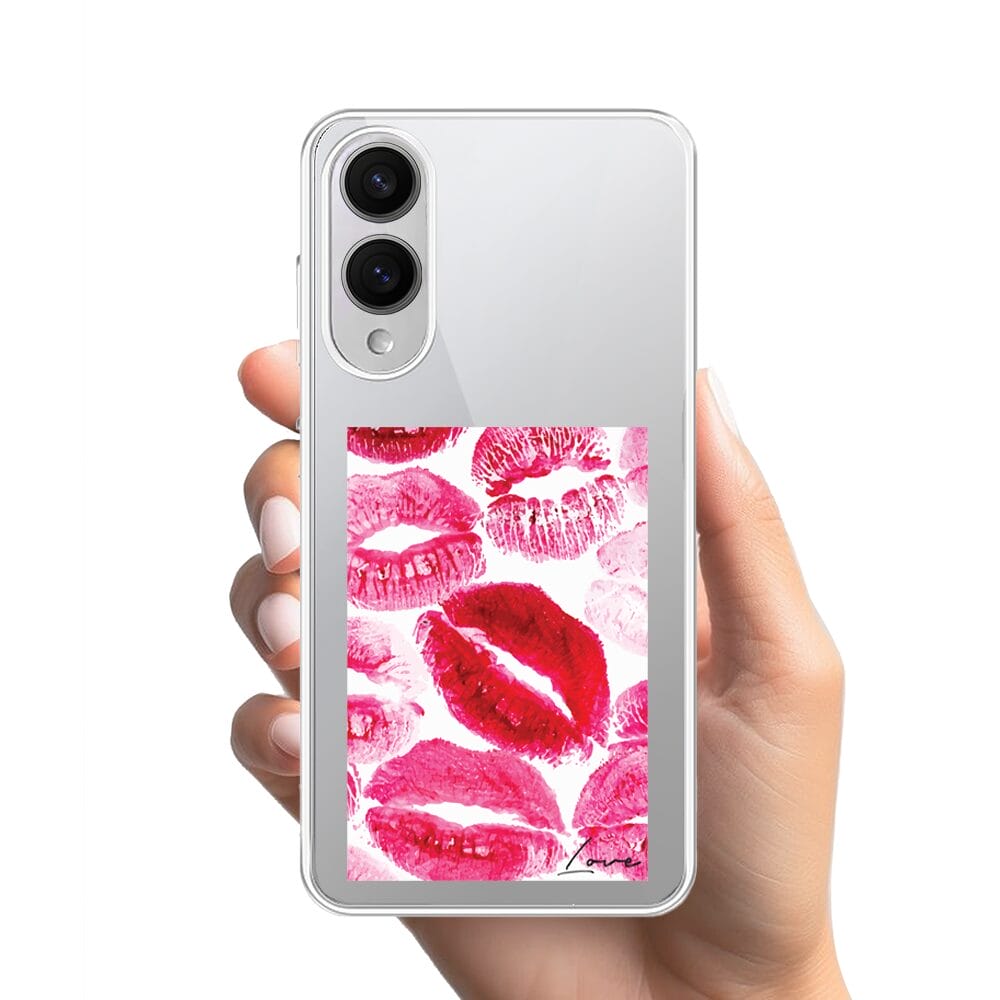 Etui do Samsung Galaxy S25 Edge z MagSafe przeźroczyste, silikonowe Flexi, pocałunki z napisem „love”
