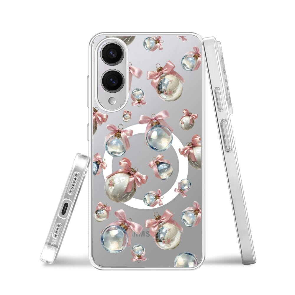 Etui do Samsung Galaxy S25 Edge z MagSafe przeźroczyste, silikonowe Flexi, Przytulne święta, Pastelowe bombki