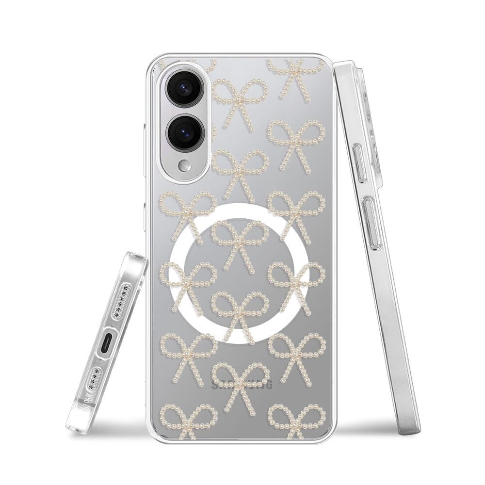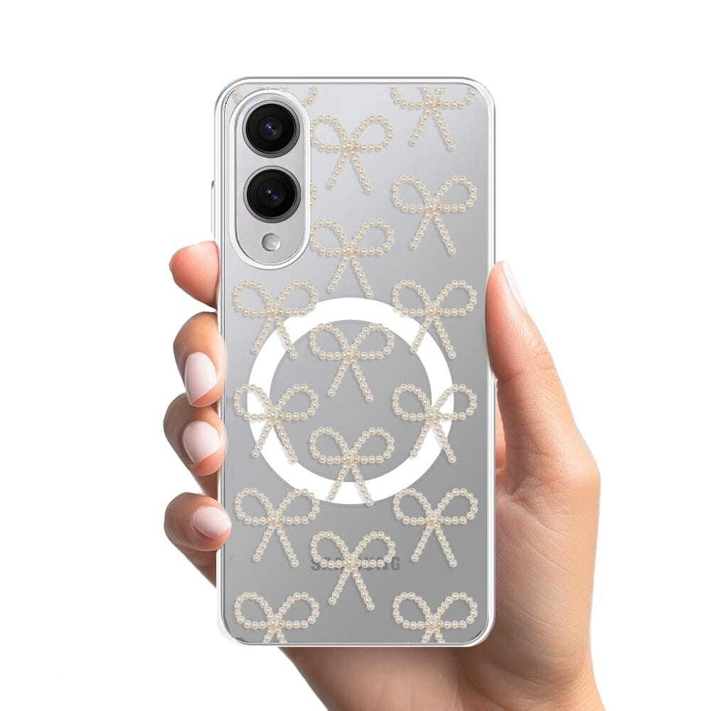 Etui do Samsung Galaxy S25 Edge z MagSafe przeźroczyste, silikonowe Flexi, Przytulne święta, złote kokardki