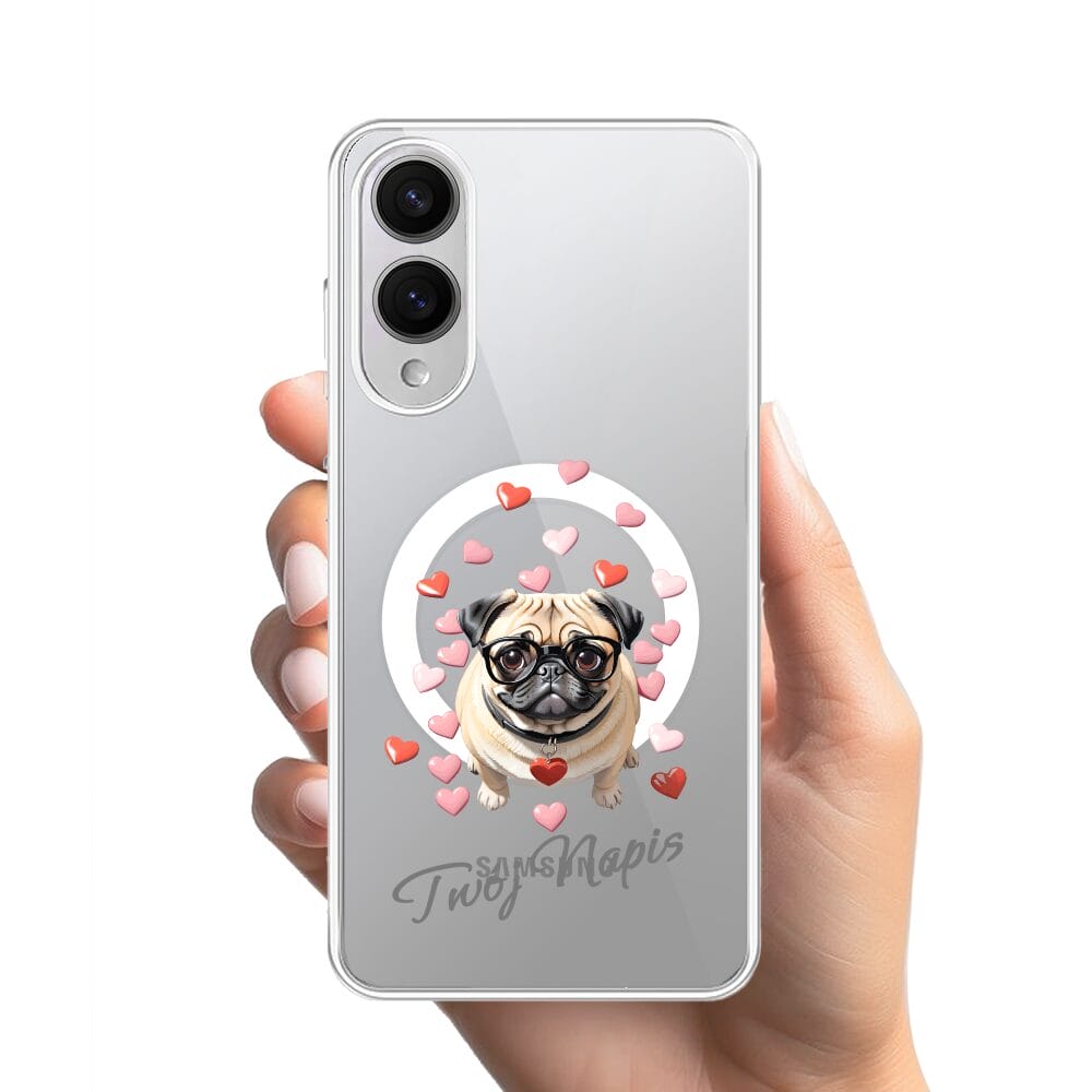 Etui do Samsung Galaxy S25 Edge z MagSafe przeźroczyste, silikonowe Flexi, Puppy Love, pies rasy Mops