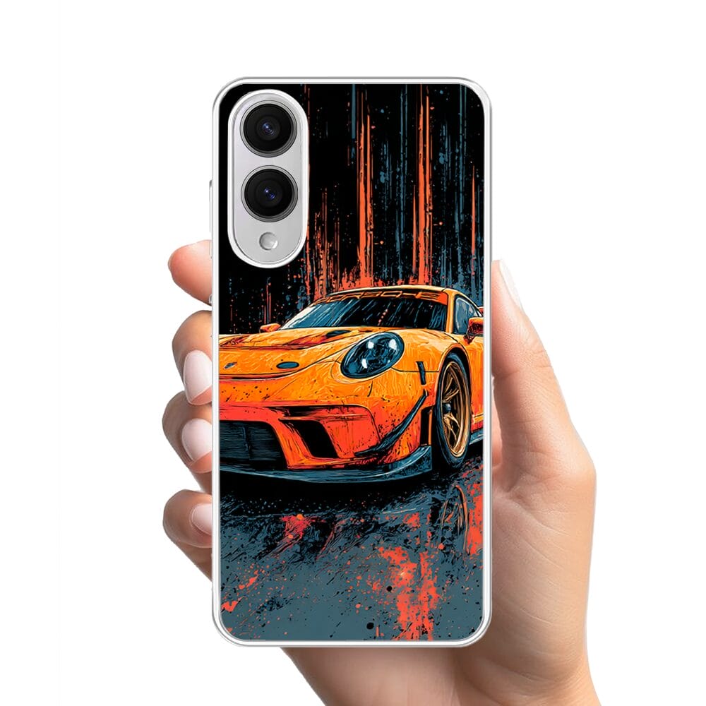 Etui do Samsung Galaxy S25 Edge z MagSafe przeźroczyste, silikonowe Flexi, Szybkie Auta, Pomarańczowa 911