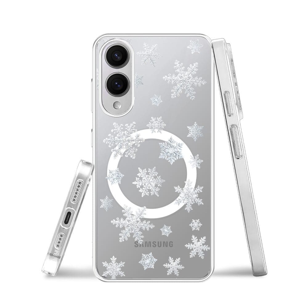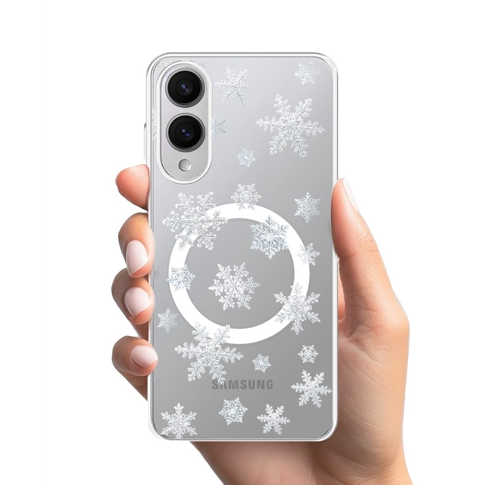 Etui do Samsung Galaxy S25 Edge z MagSafe przeźroczyste, silikonowe Flexi, Zimowa magia, Delikatne płatki śniegu