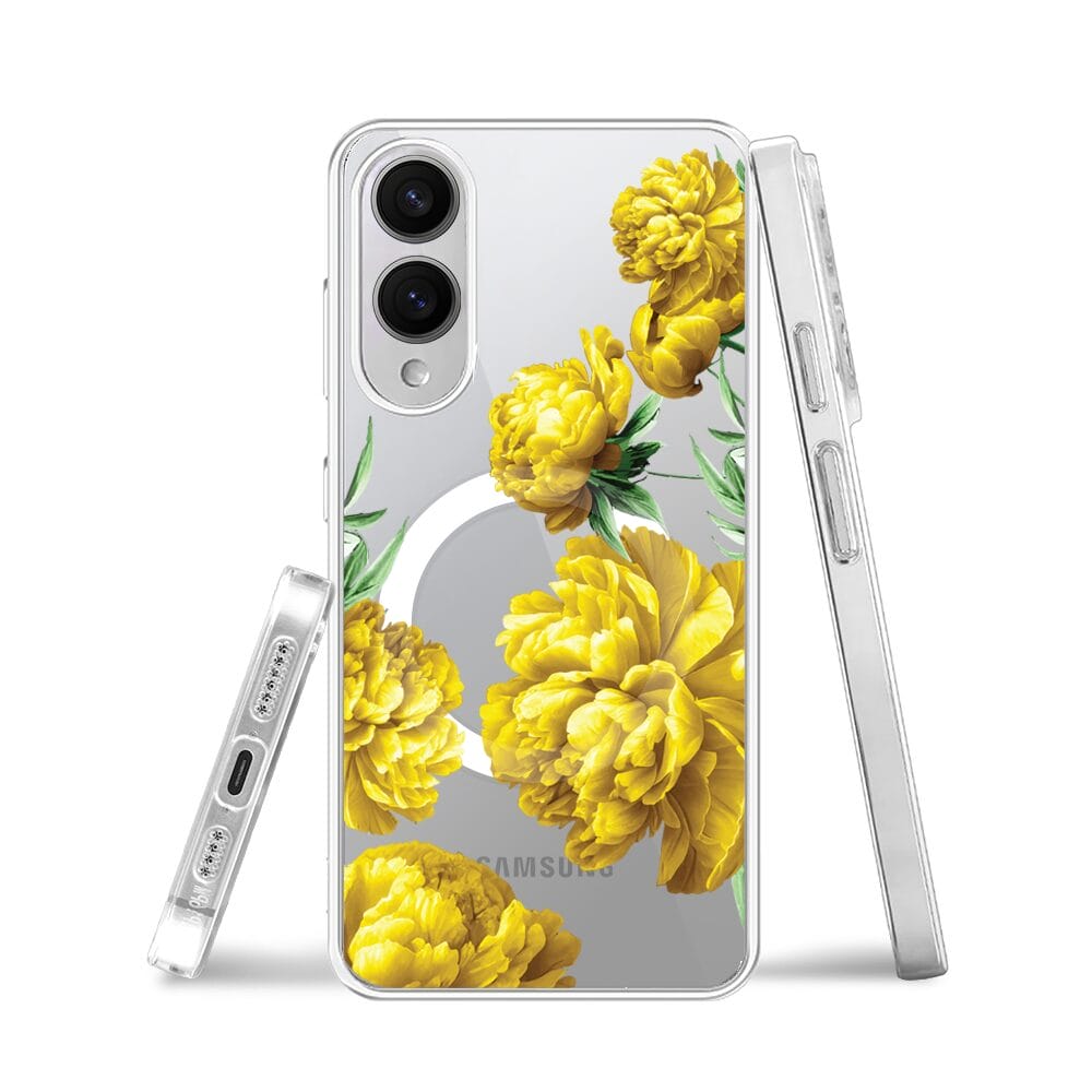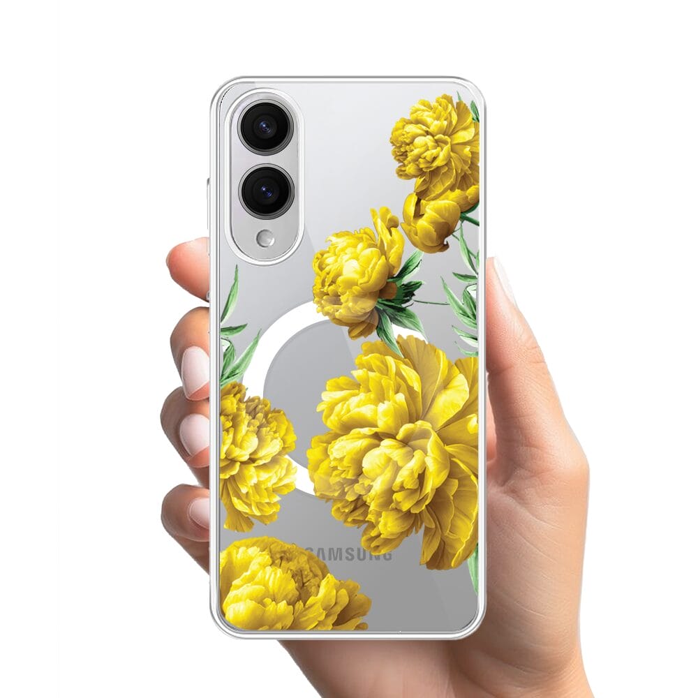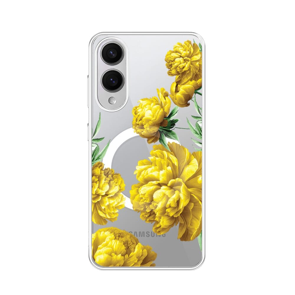 Etui do Samsung Galaxy S25 Edge z MagSafe przeźroczyste, silikonowe Flexi, żółte piwonie