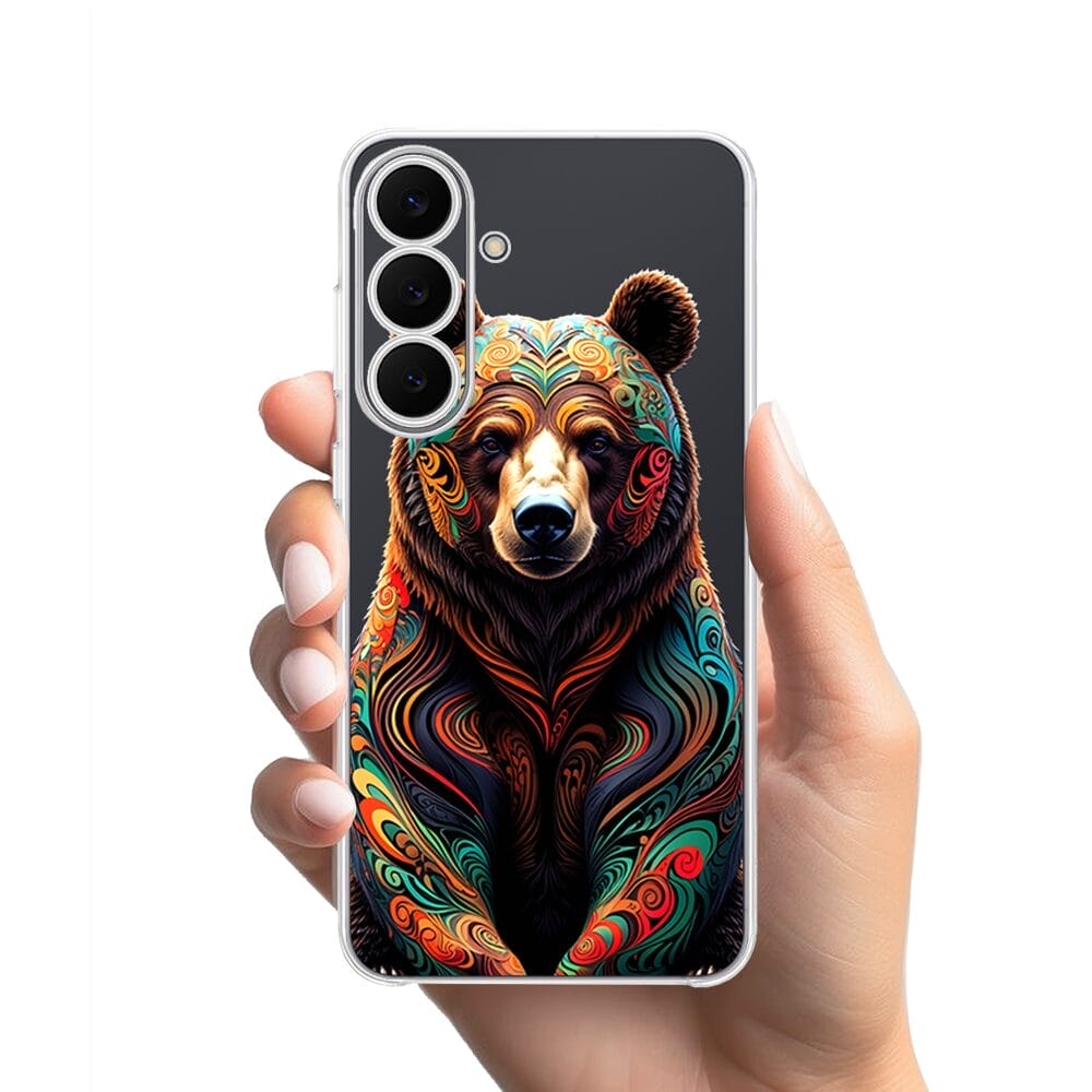 Etui do Samsung Galaxy S25 FE przeźroczyste, silikonowe Flexi, Dzika Mandala, Niedźwiedź