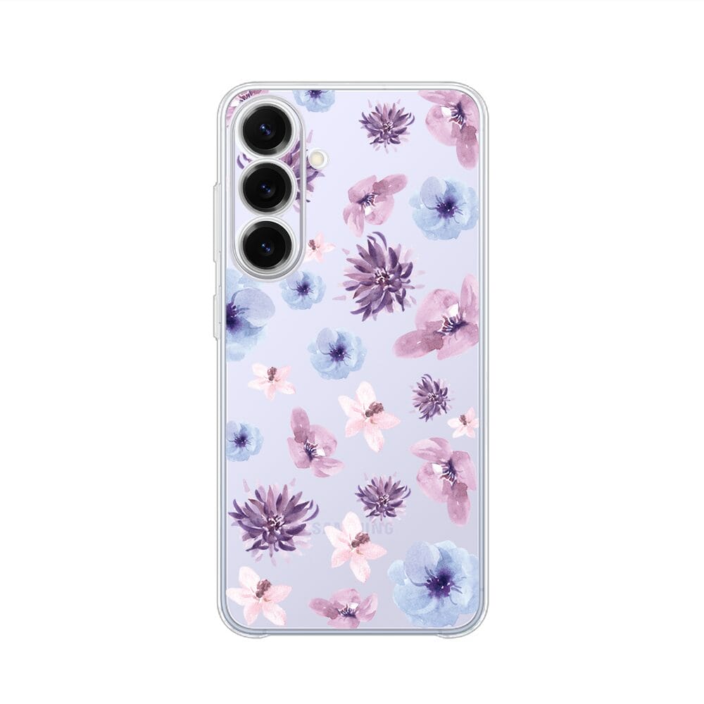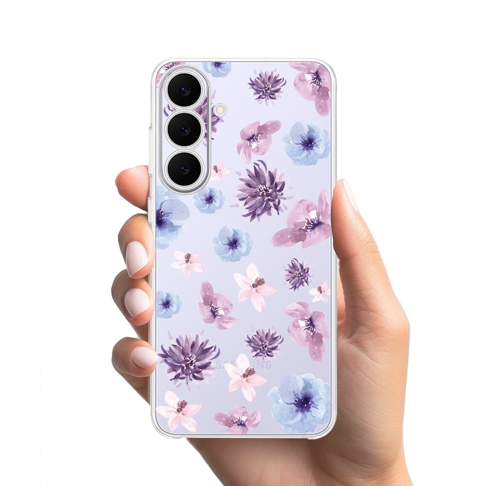 Etui do Samsung Galaxy S25 FE przeźroczyste, silikonowe Flexi, kwiatki niebieskie, fioletowe