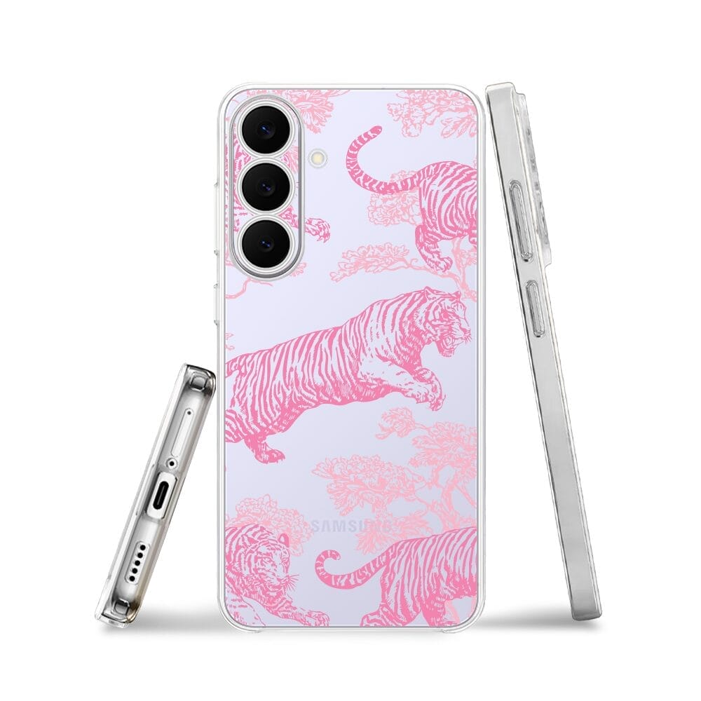 Etui do Samsung Galaxy S25 FE przeźroczyste, silikonowe Flexi, Mystic, Różowe tygrysy