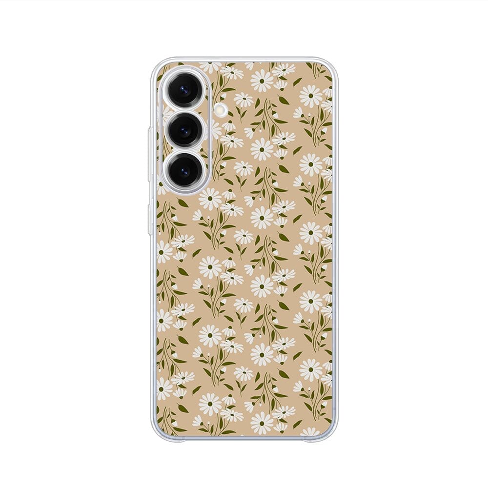 Etui do Samsung Galaxy S25 FE przeźroczyste, silikonowe Flexi, Summer Patterns, delikatne kwiatki na cielistym tle