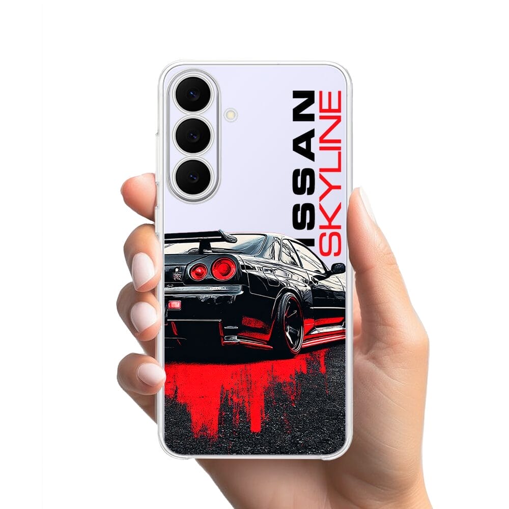 Etui do Samsung Galaxy S25 FE przeźroczyste, silikonowe Flexi, Szybkie Auta, czarny Skyline