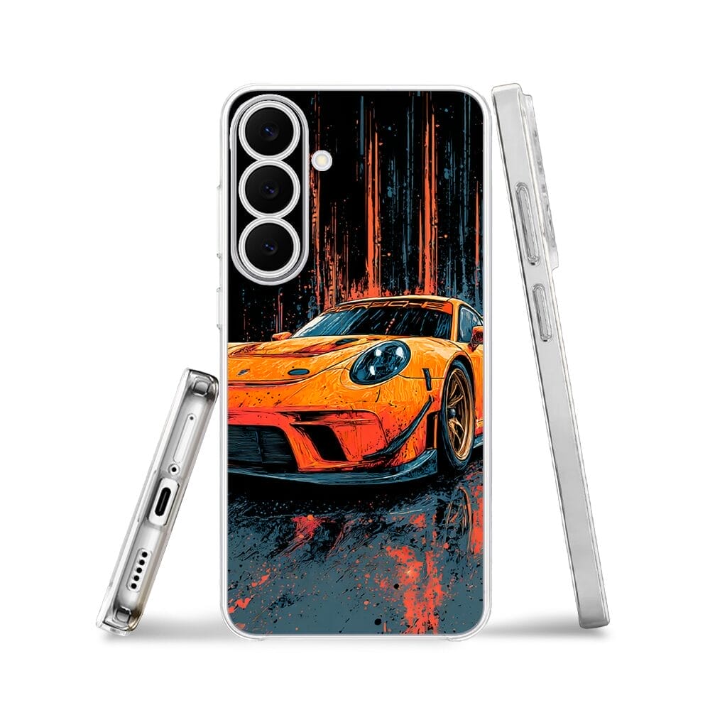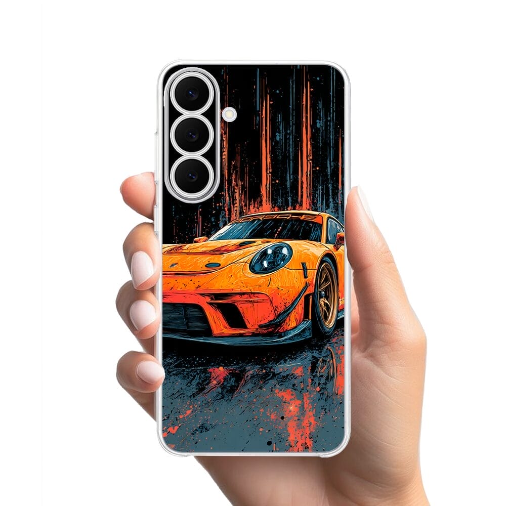 Etui do Samsung Galaxy S25 FE przeźroczyste, silikonowe Flexi, Szybkie Auta, Pomarańczowa 911