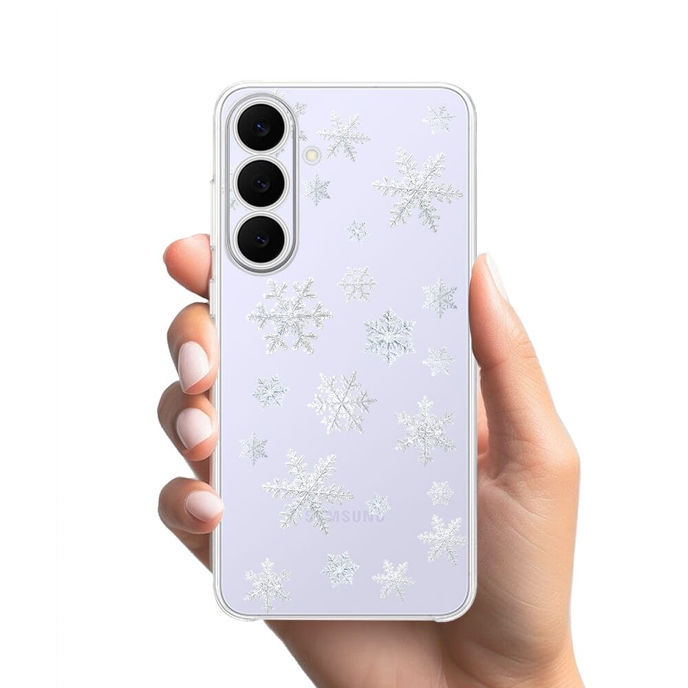 Etui do Samsung Galaxy S25 FE przeźroczyste, silikonowe Flexi, Zimowa magia, Delikatne płatki śniegu