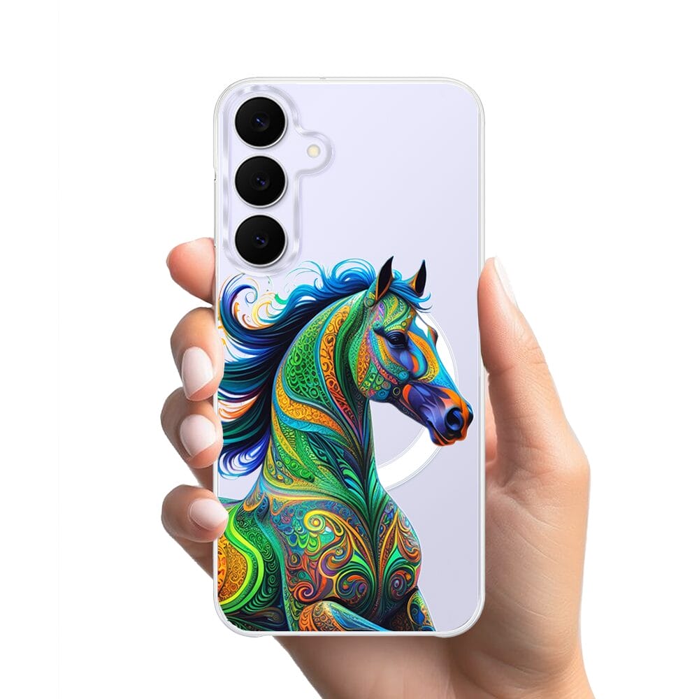Etui do Samsung Galaxy S25 FE z MagSafe przeźroczyste, silikonowe Flexi, Dzika Mandala, Koń