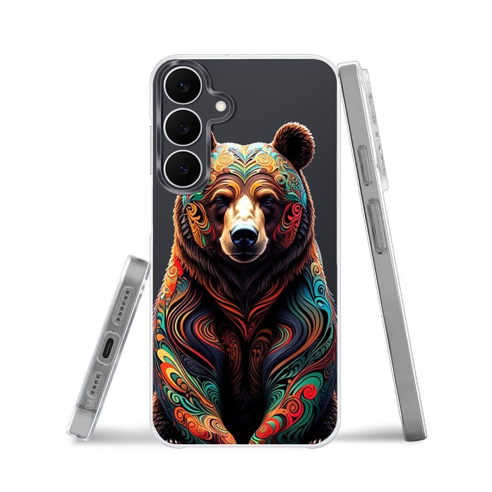 Etui do Samsung Galaxy S25 FE z MagSafe przeźroczyste, silikonowe Flexi, Dzika Mandala, Niedźwiedź