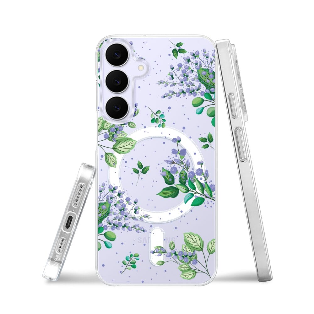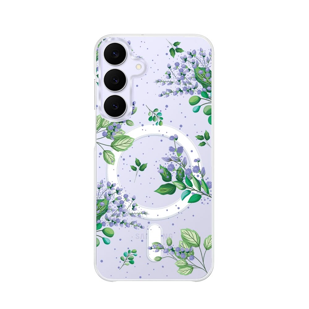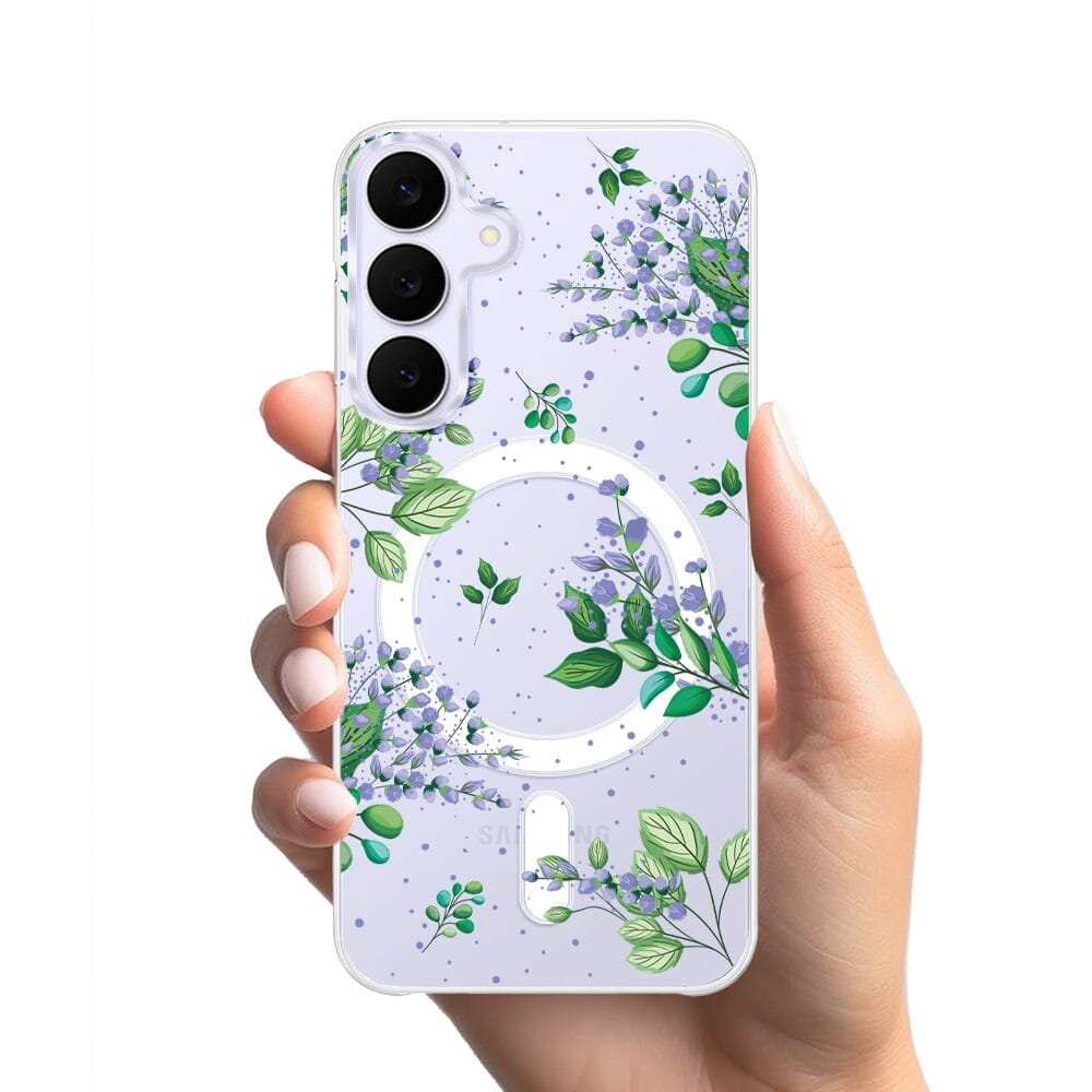 Etui do Samsung Galaxy S25 FE z MagSafe przeźroczyste, silikonowe Flexi, fioletowe kwiatki