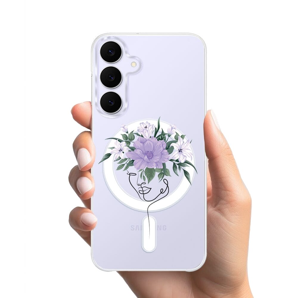 Etui do Samsung Galaxy S25 FE z MagSafe przeźroczyste, silikonowe Flexi, kobieta z Kwiatami