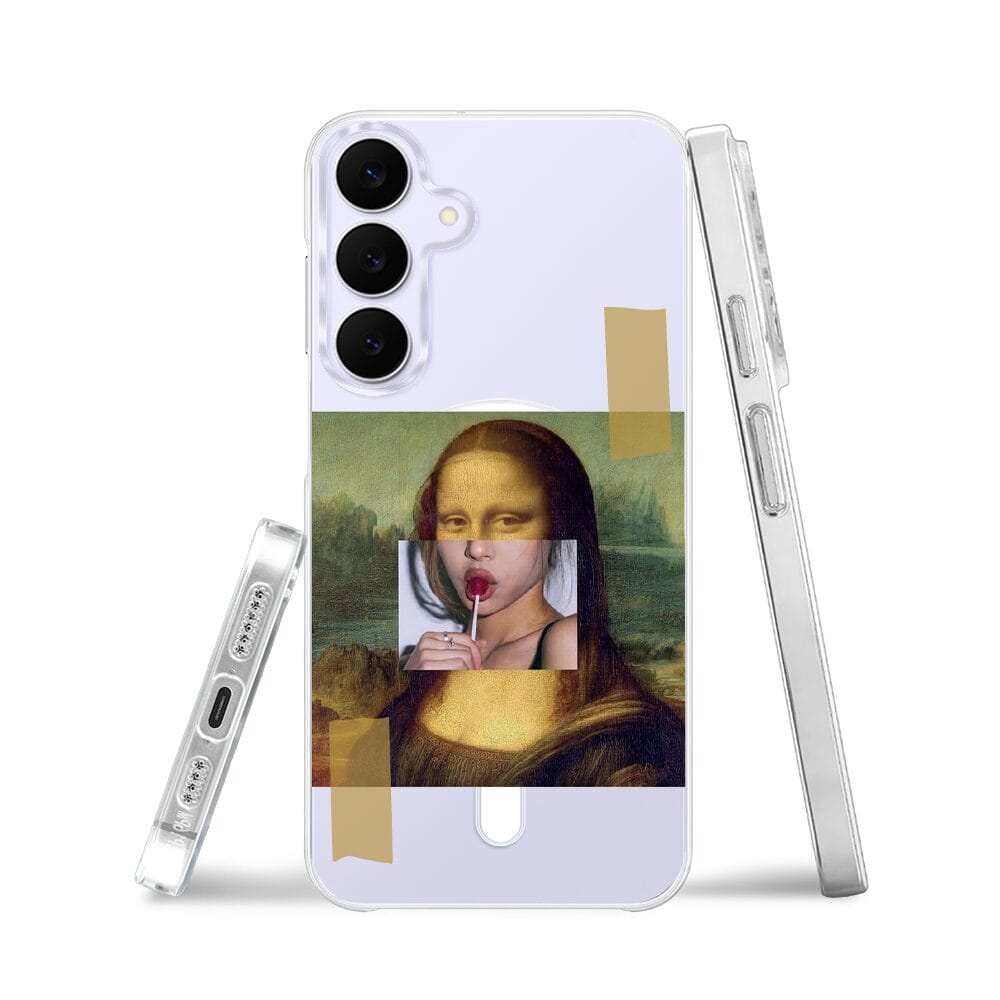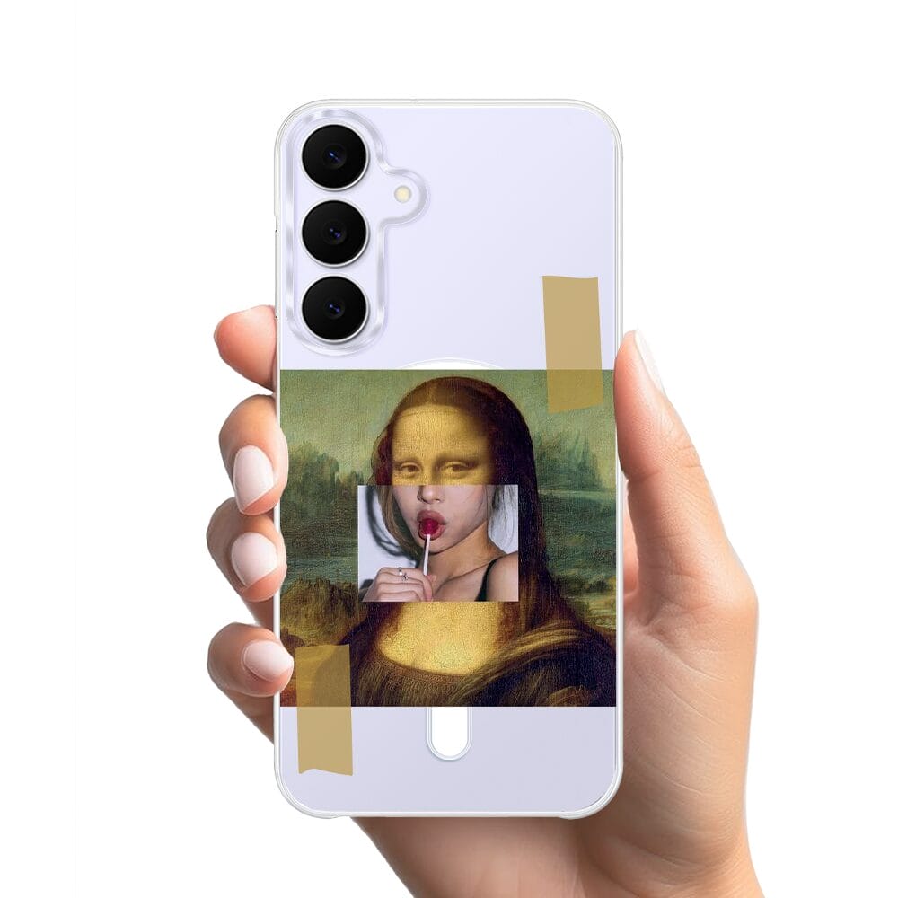 Etui do Samsung Galaxy S25 FE z MagSafe przeźroczyste, silikonowe Flexi, Mona lisa z lizakiem