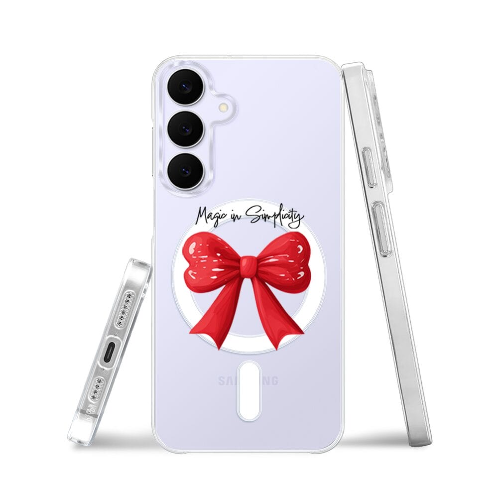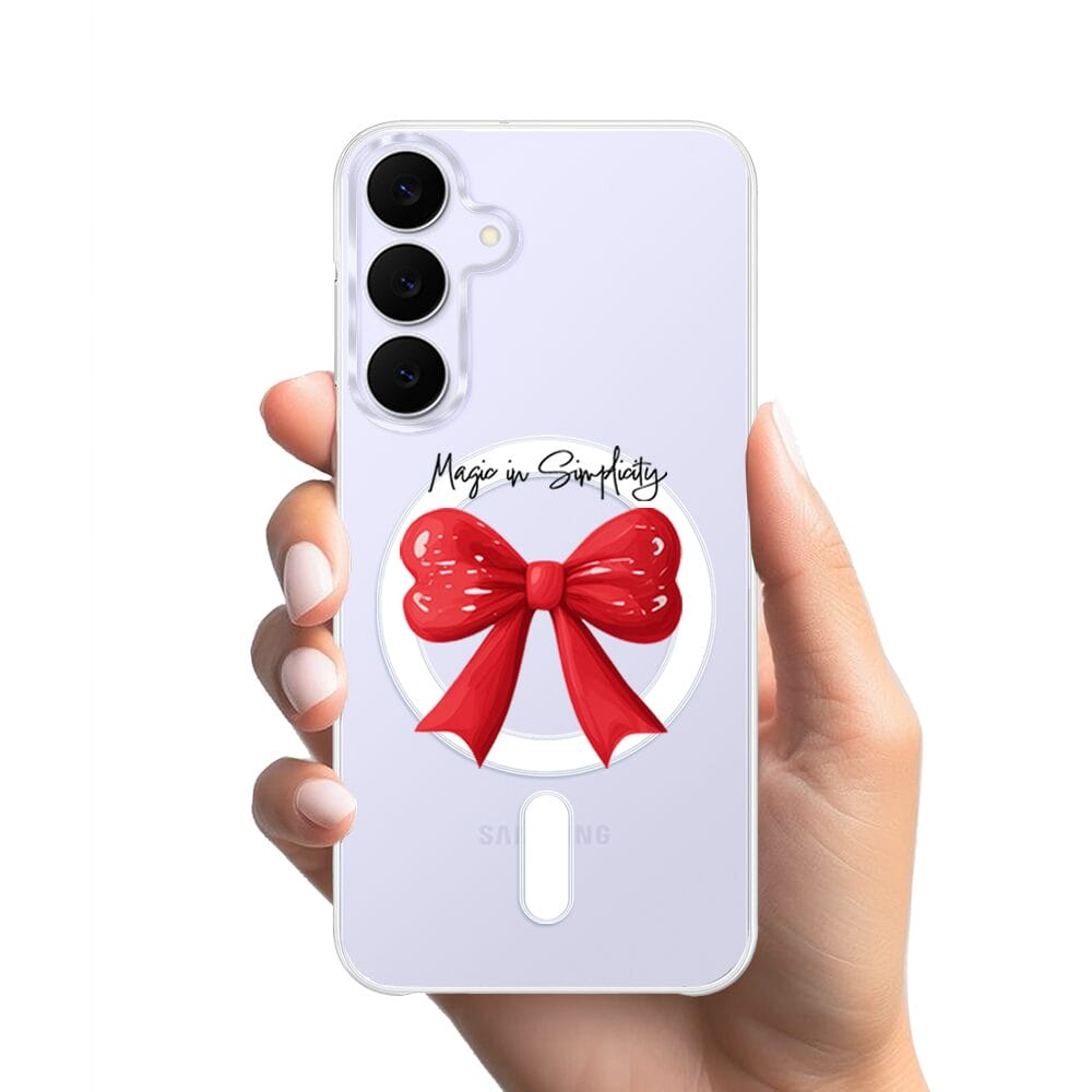 Etui do Samsung Galaxy S25 FE z MagSafe przeźroczyste, silikonowe Flexi, Przytulne święta, Czerwona kokarda